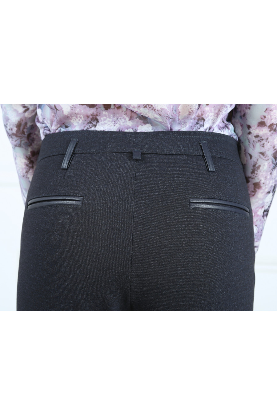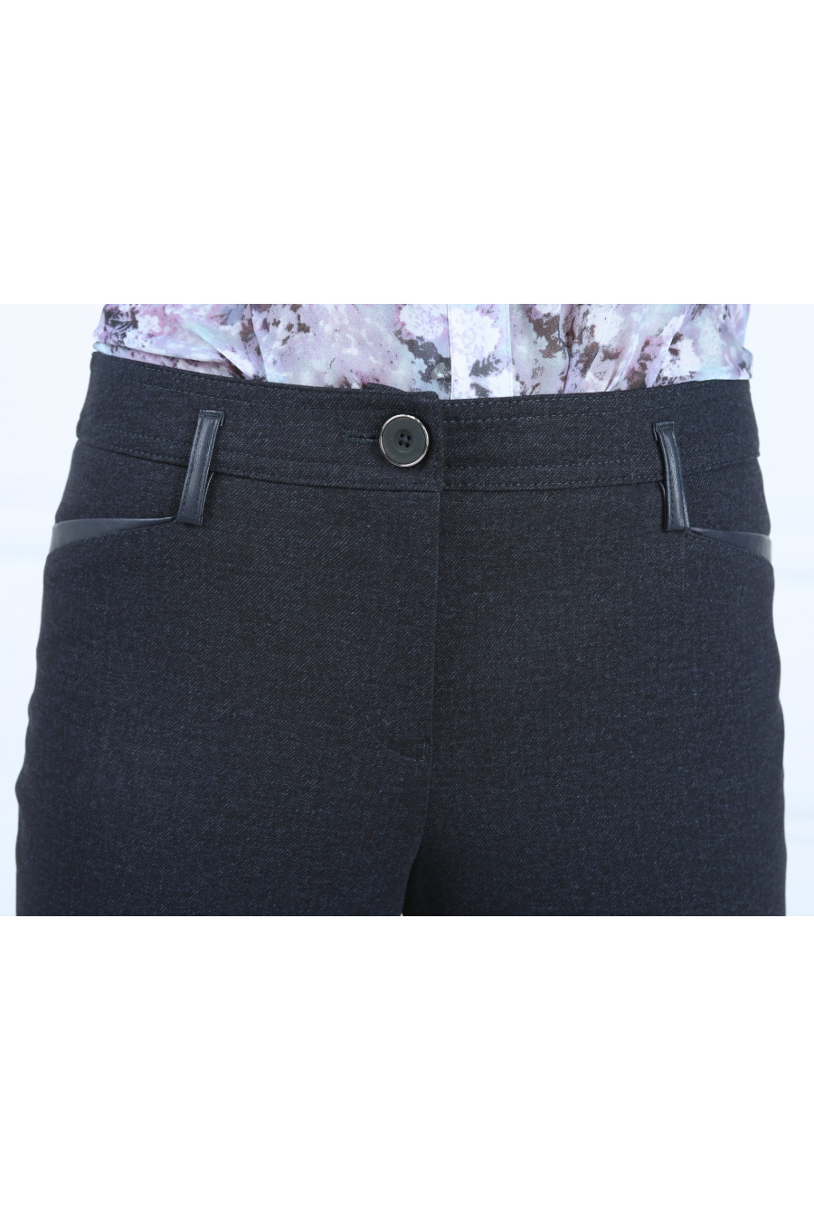 Брюки на средней посадке зауженные к низу с карманами из кожи "Трикотаж Джинса"темно-синие