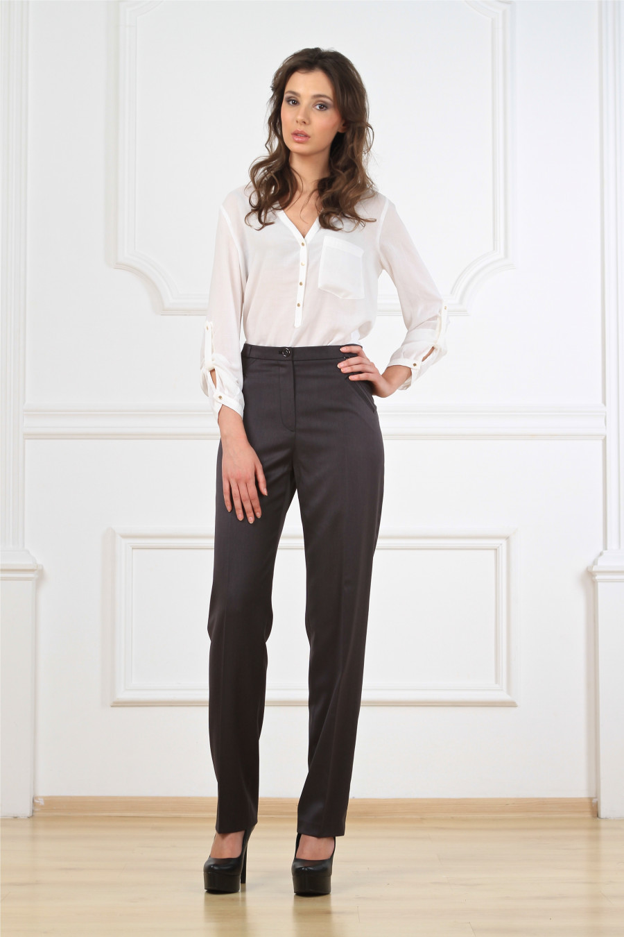 Брюки на высокой посадке прямые с карманами. Ницца,темно-серые