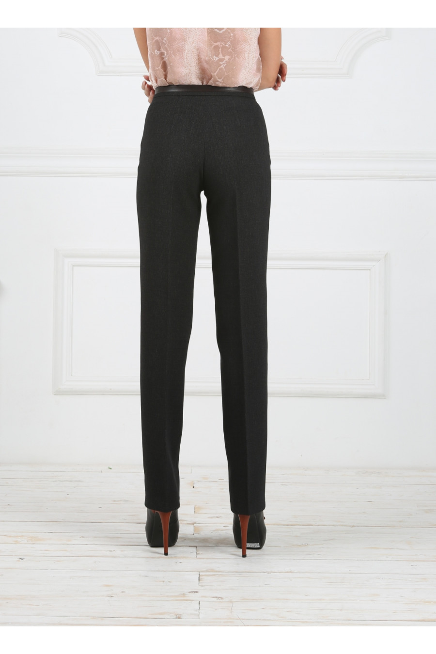 Брюки на высокой покадке зауженные к низу с отделкой из кожи «Пье-де-пулль» коричневые