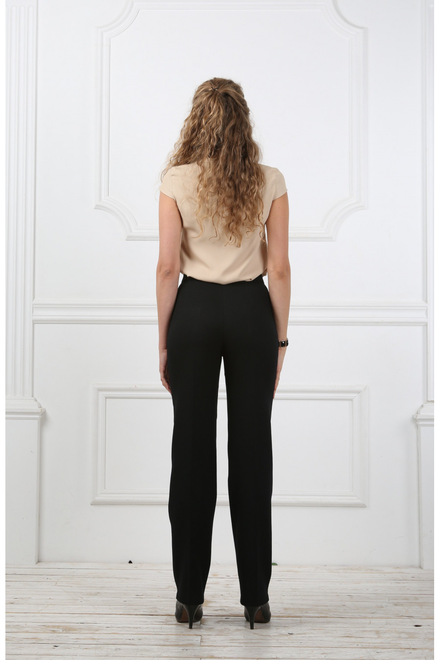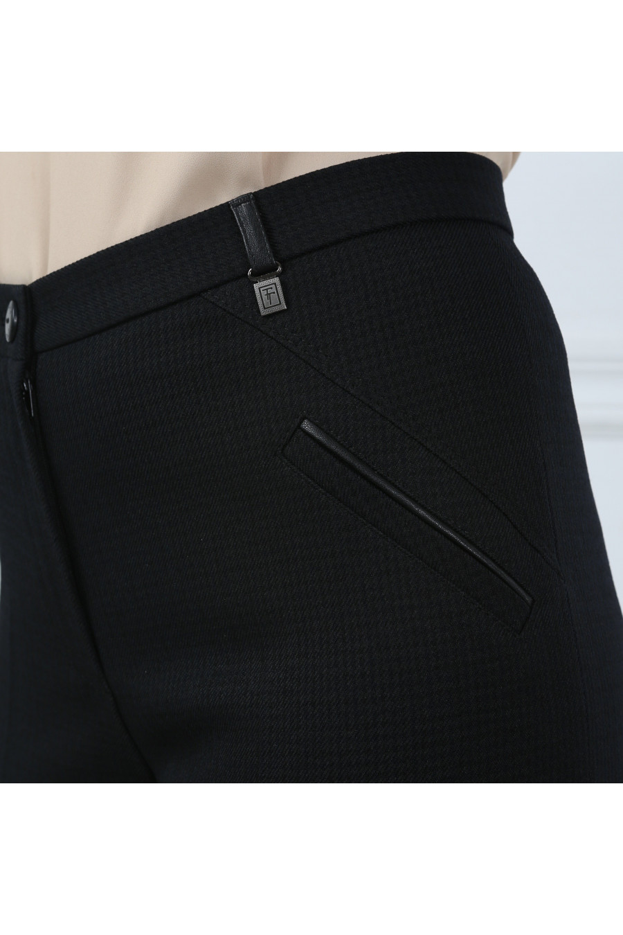 Брюки черно-коричневые на высокой посадке прямые от бедра с карманами - «Виндзор»