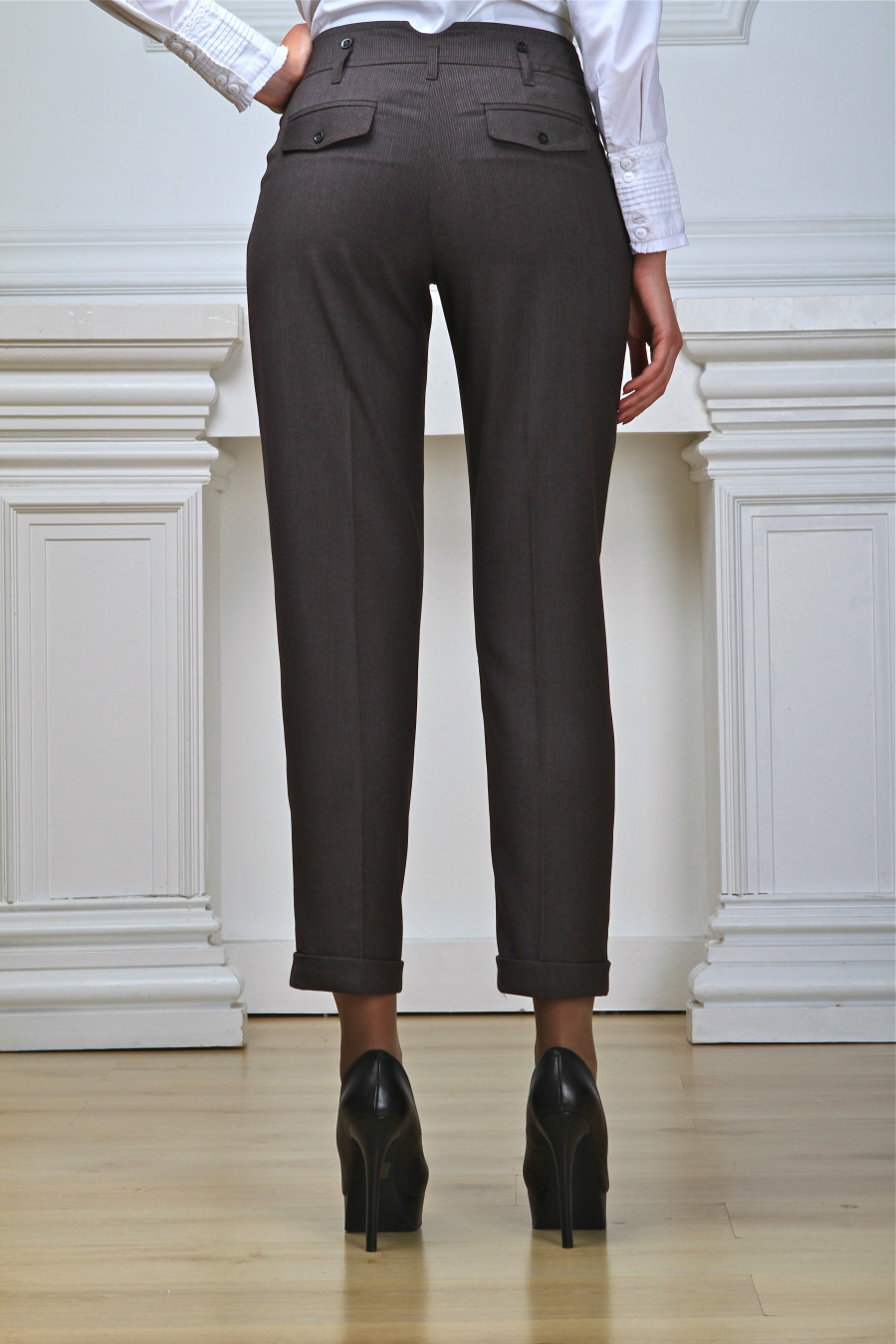 Брюки на средней посадке зауженные с карманами 7/8 «Моника» коричневые