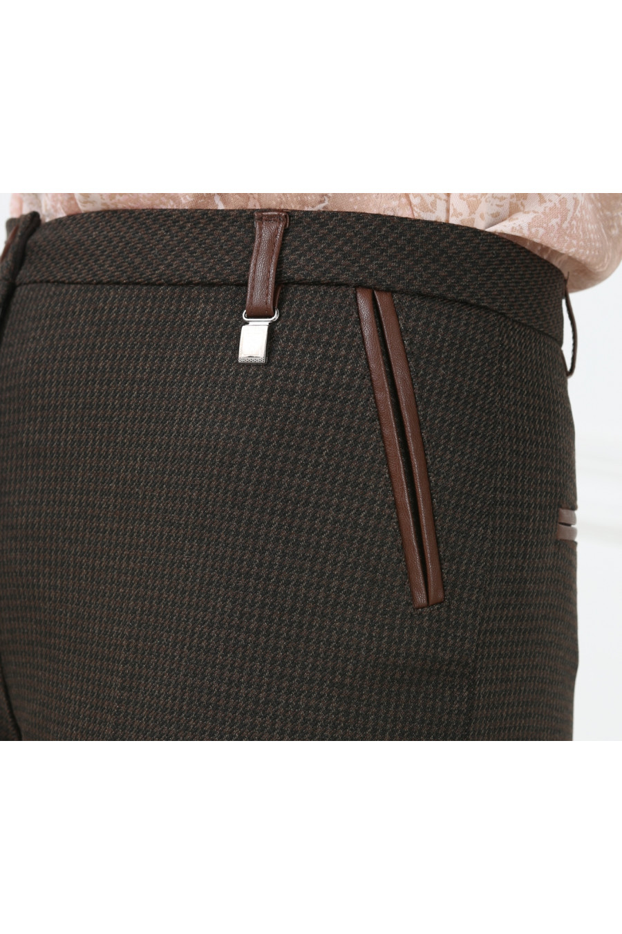 Брюки на средней посадке зауженные к низу с отделкой из кожи «Виндзор» коричневые