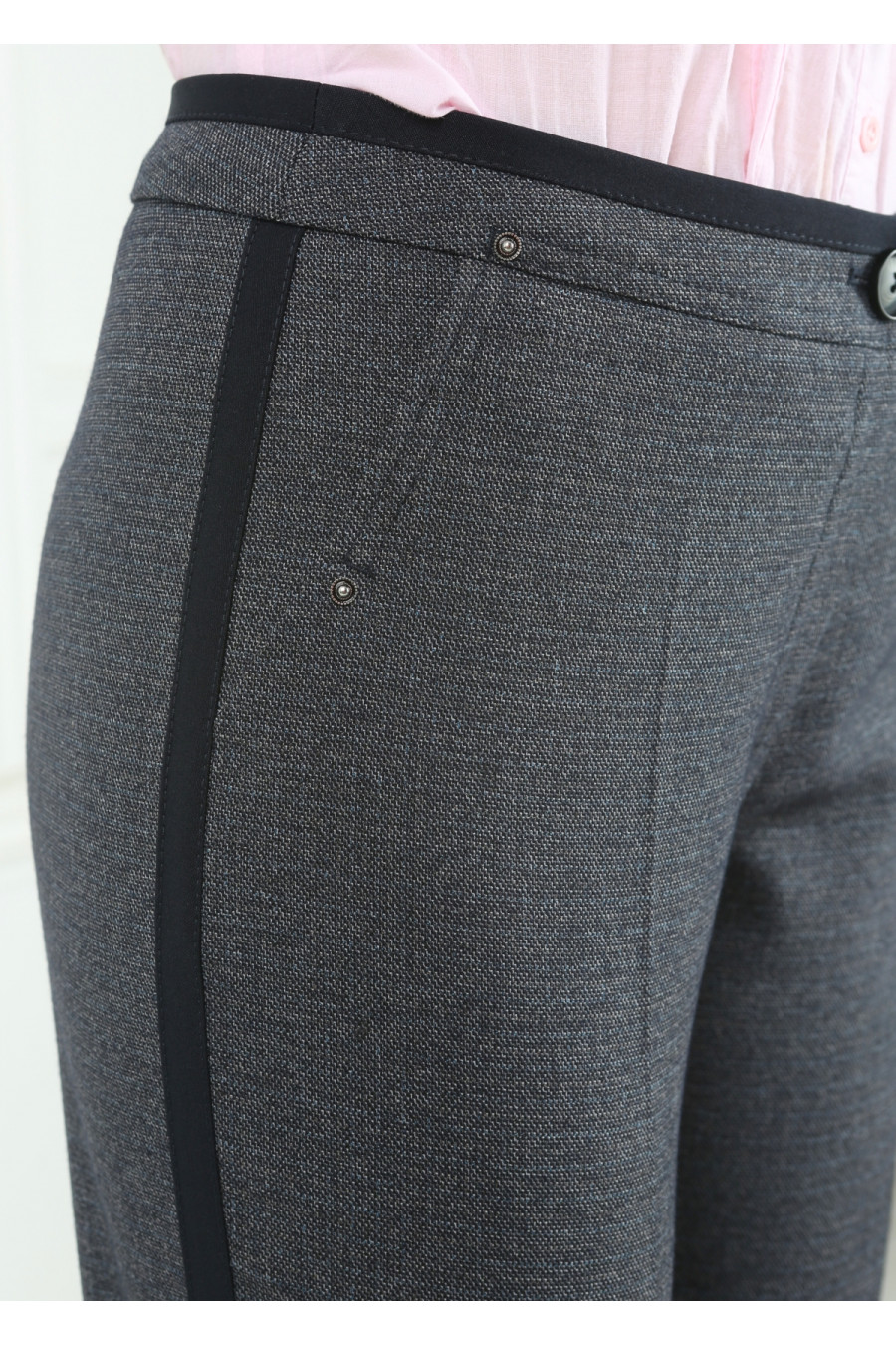 Брюки на средней посадке зауженные к низу с карманами и лампасами «Твид» серо-синие