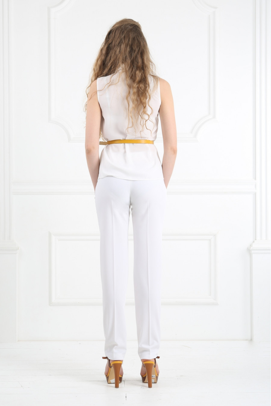 Брюки на средней посадке зауженные к низу с карманами «Лавранс» белые
