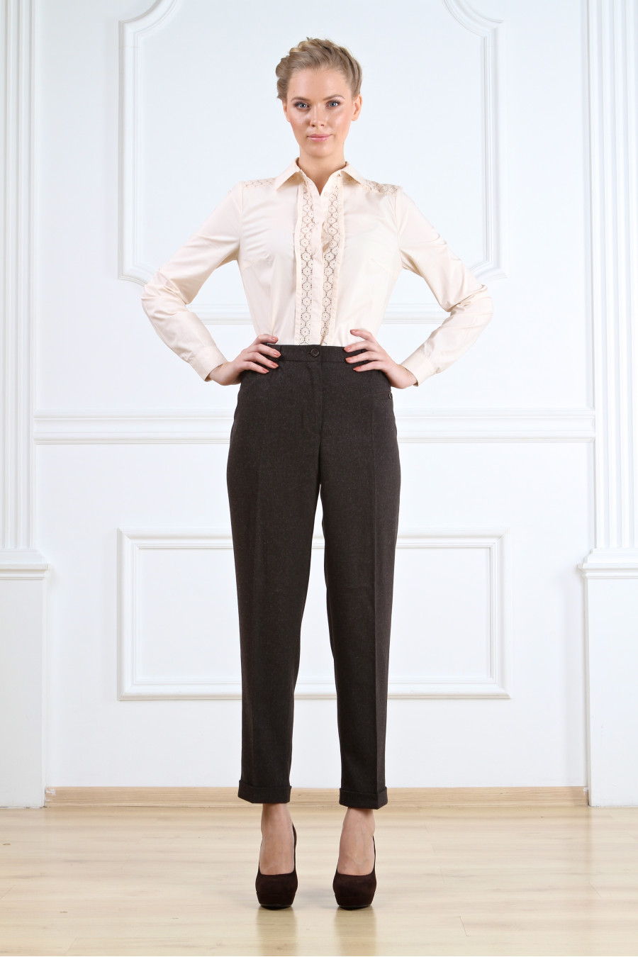 Брюки на высокой посадке на резинке зауженные с карманами 7/8 «Версаль» темно-коричневые