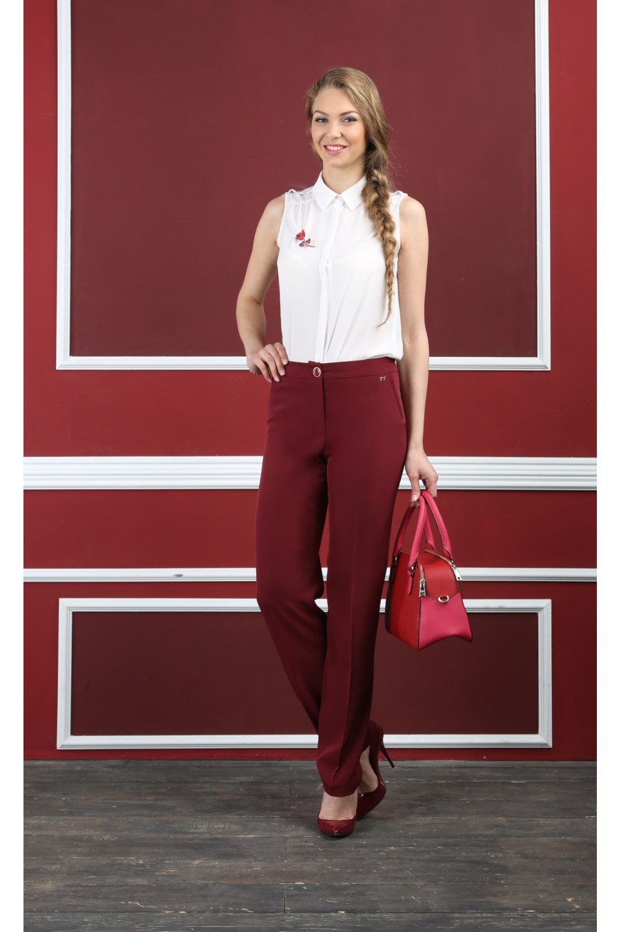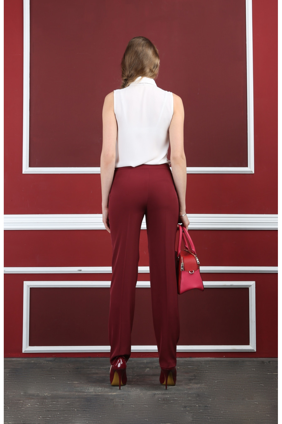 Брюки на средней посадке зауженные к низу «Шелк Дюпон» винные