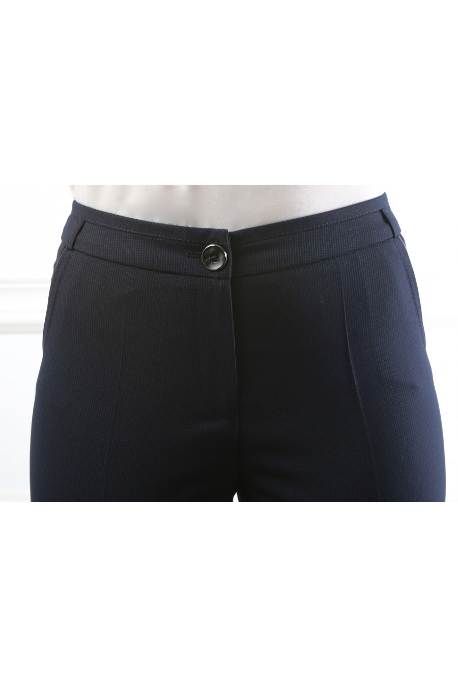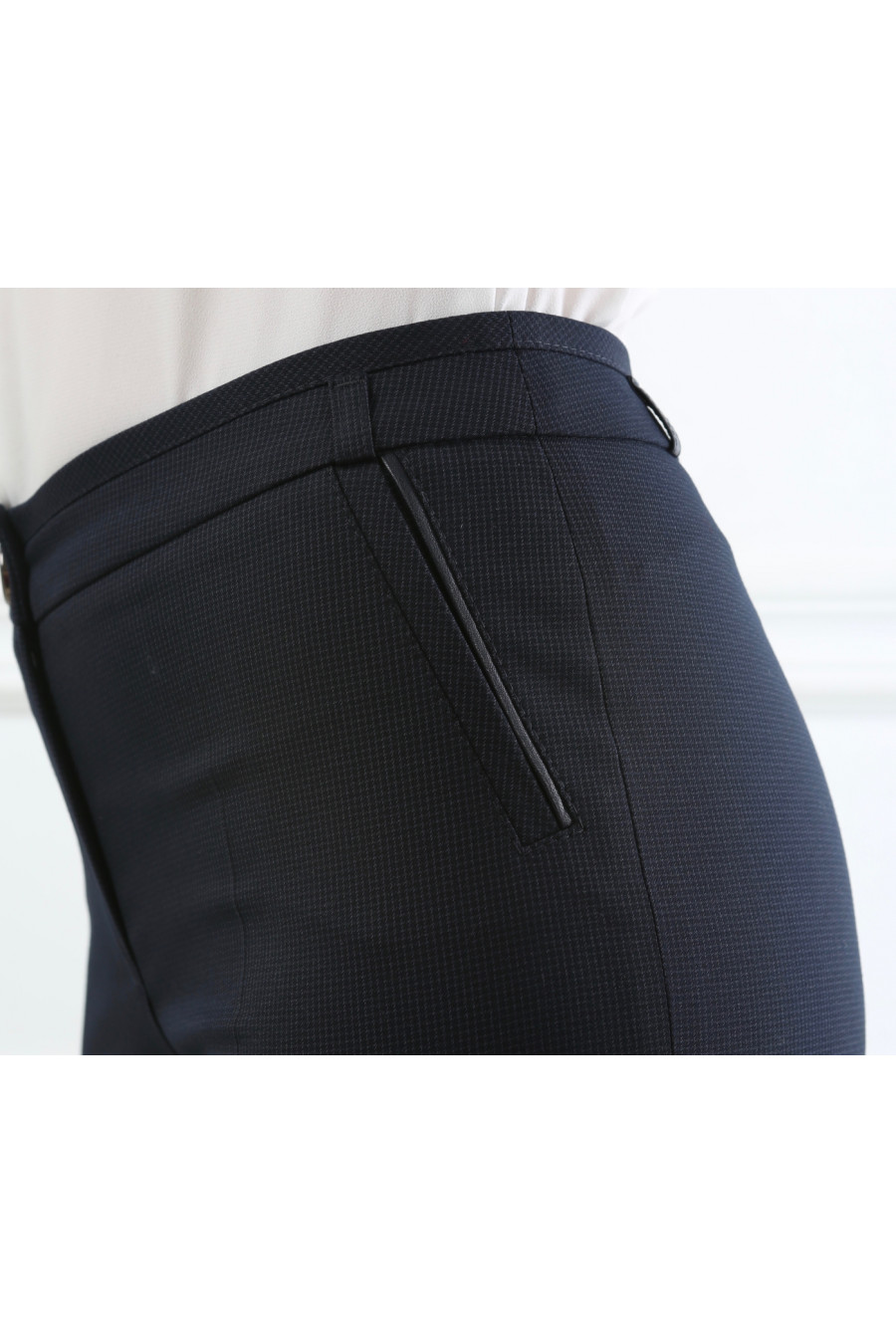 Брюки на средней посадке зауженные к низу с отделкой из кожи "Клеточка Мадрик"темно-синие