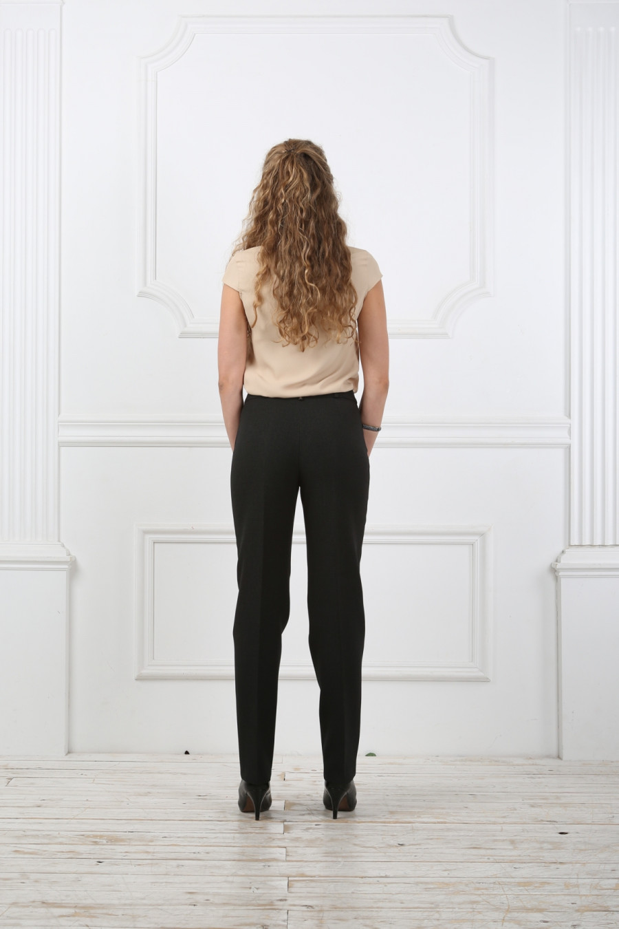 Брюки на средней посадке зауженные к низу с карманами "Пье-де-пуль"серо-коричневые