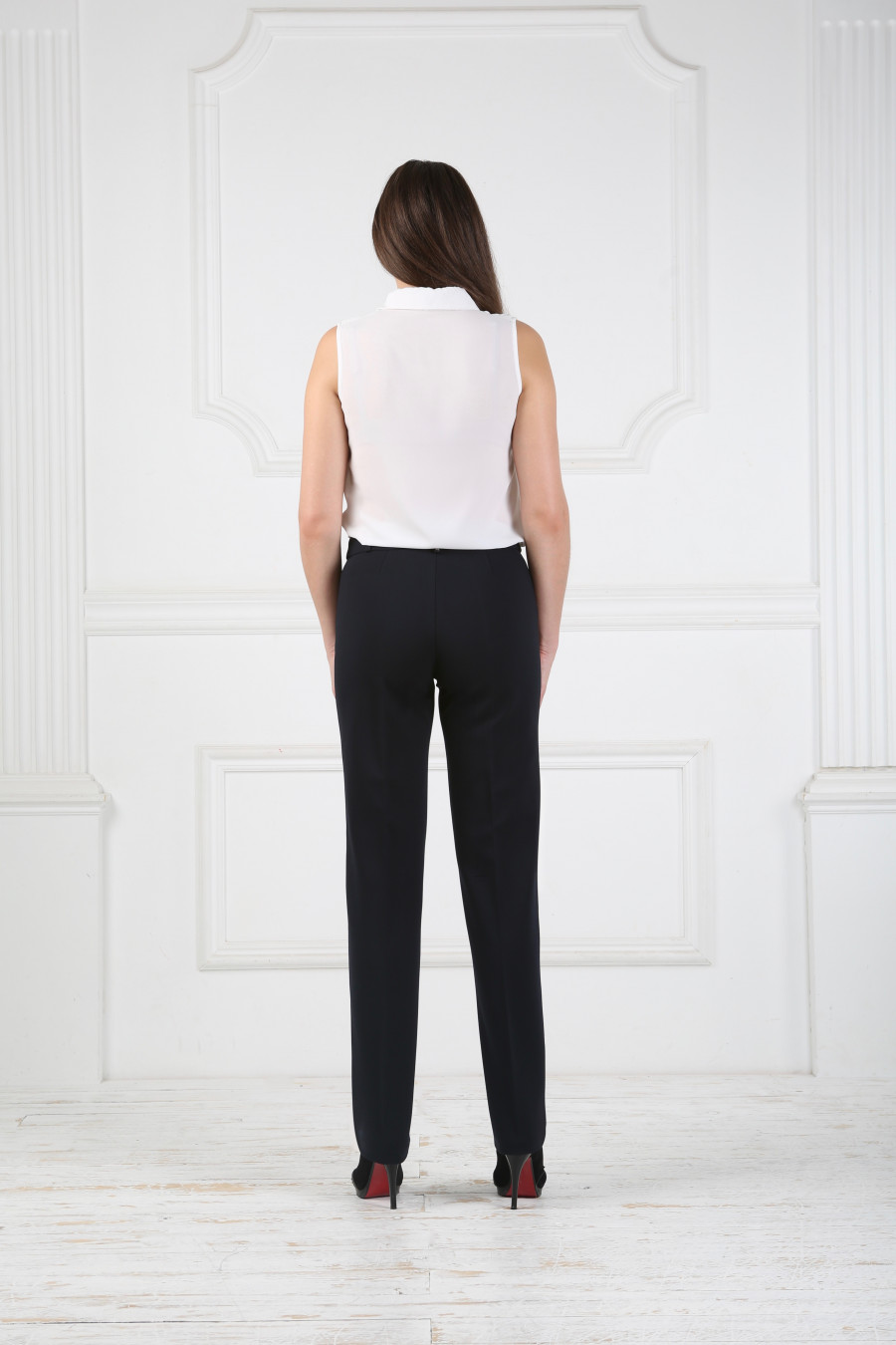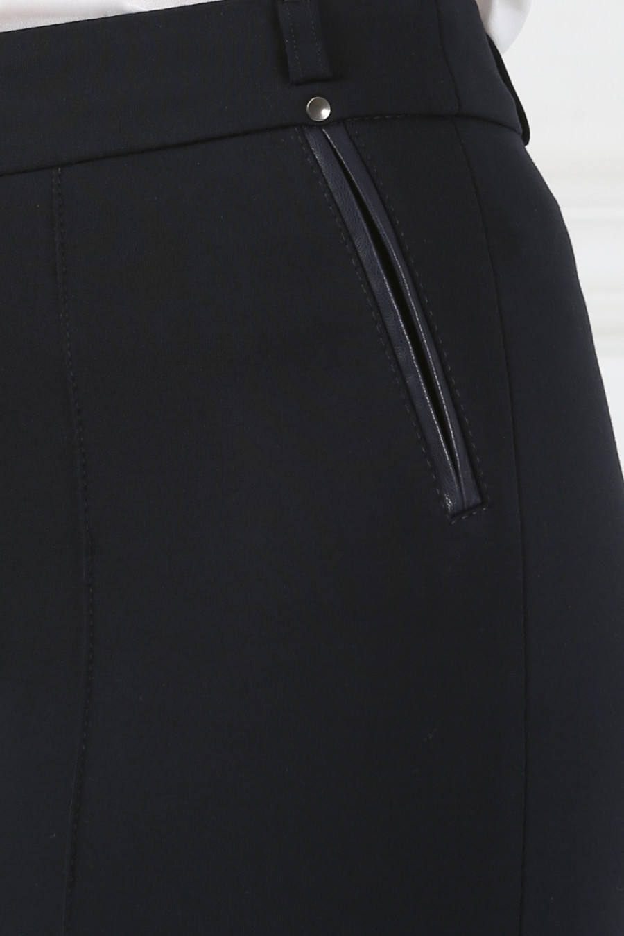 БРЮКИ НА СРЕДНЕЙ ПОСАДКЕ ЗАУЖЕННЫЕ К НИЗУ "ТРИКОТАЖ" ТЕМНО-СИНИЕ