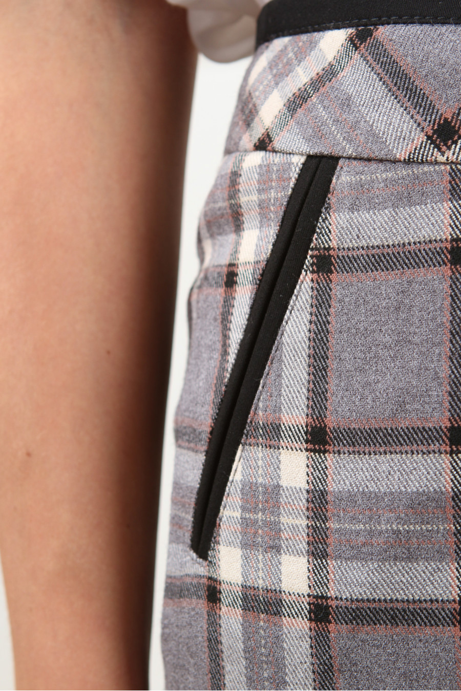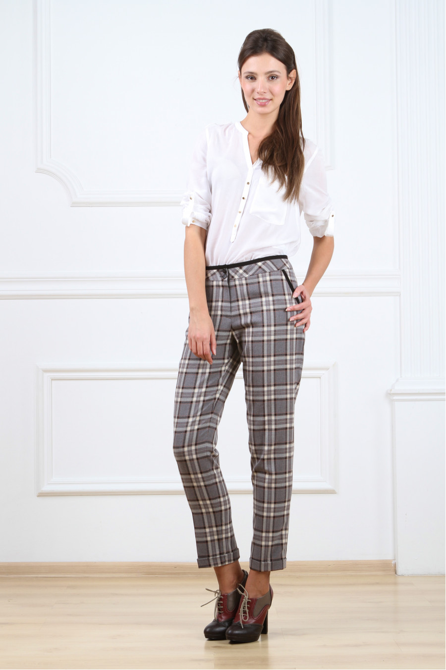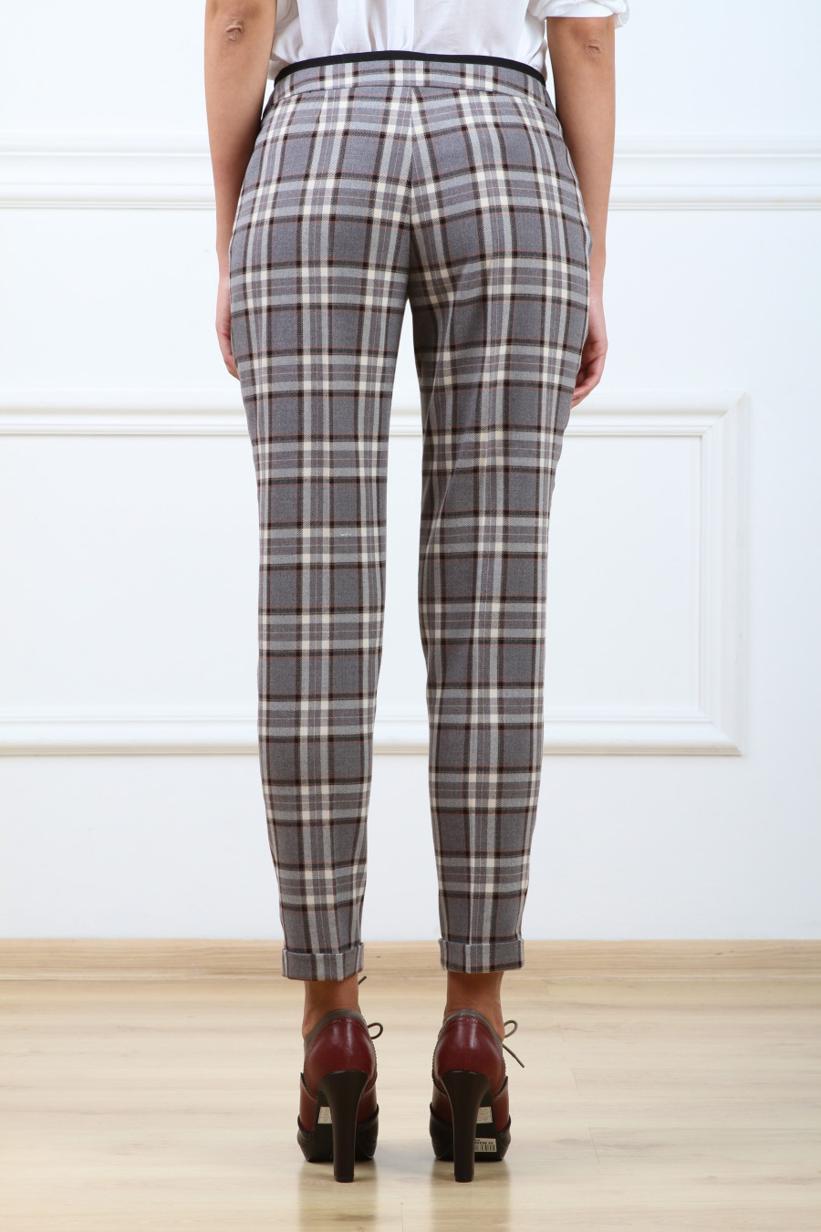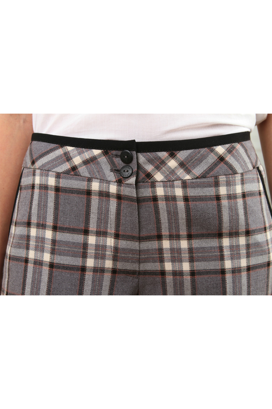 Брюки на средней посадке зауженные с карманами 7/8. Клетка бежевая,серо-бежевые