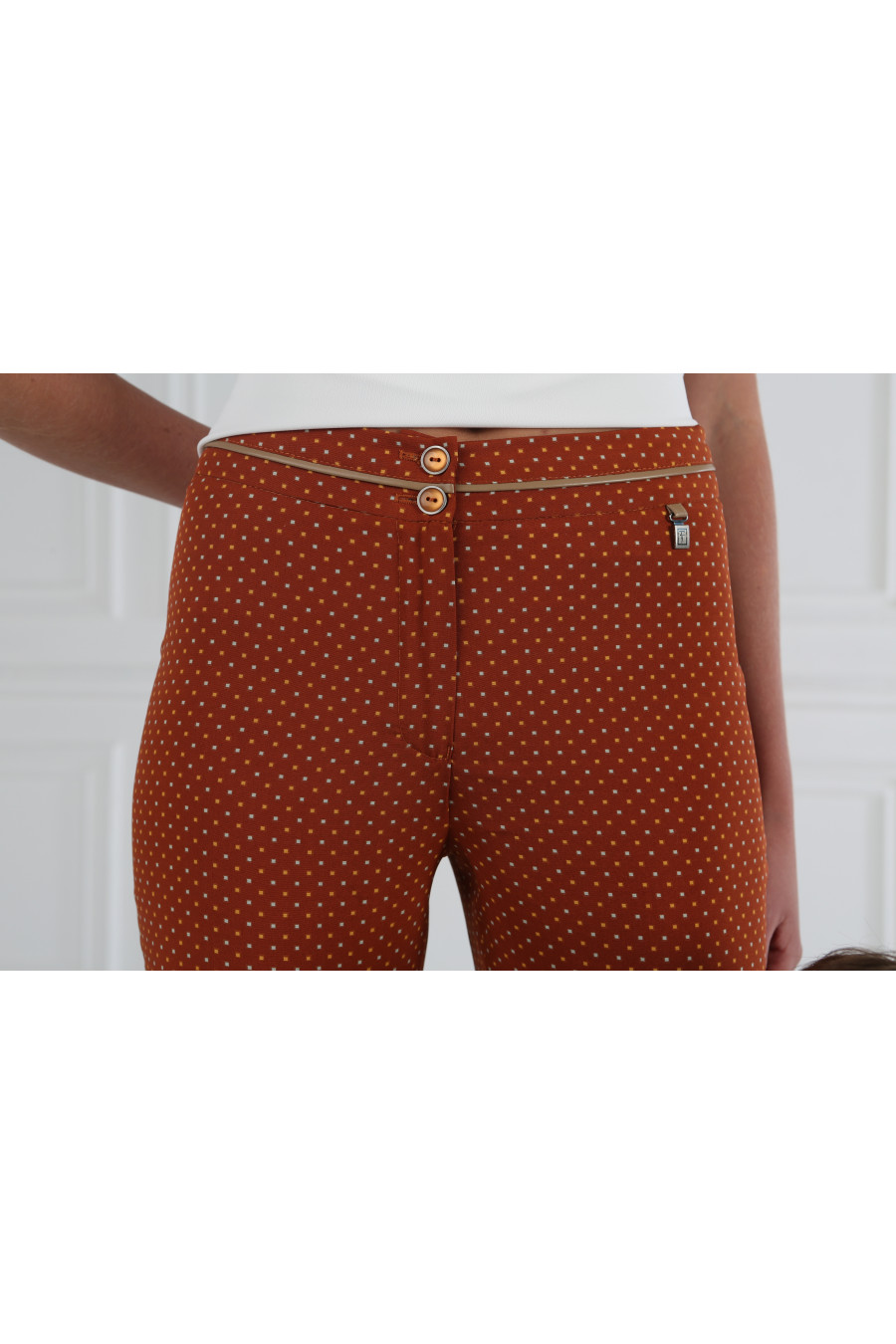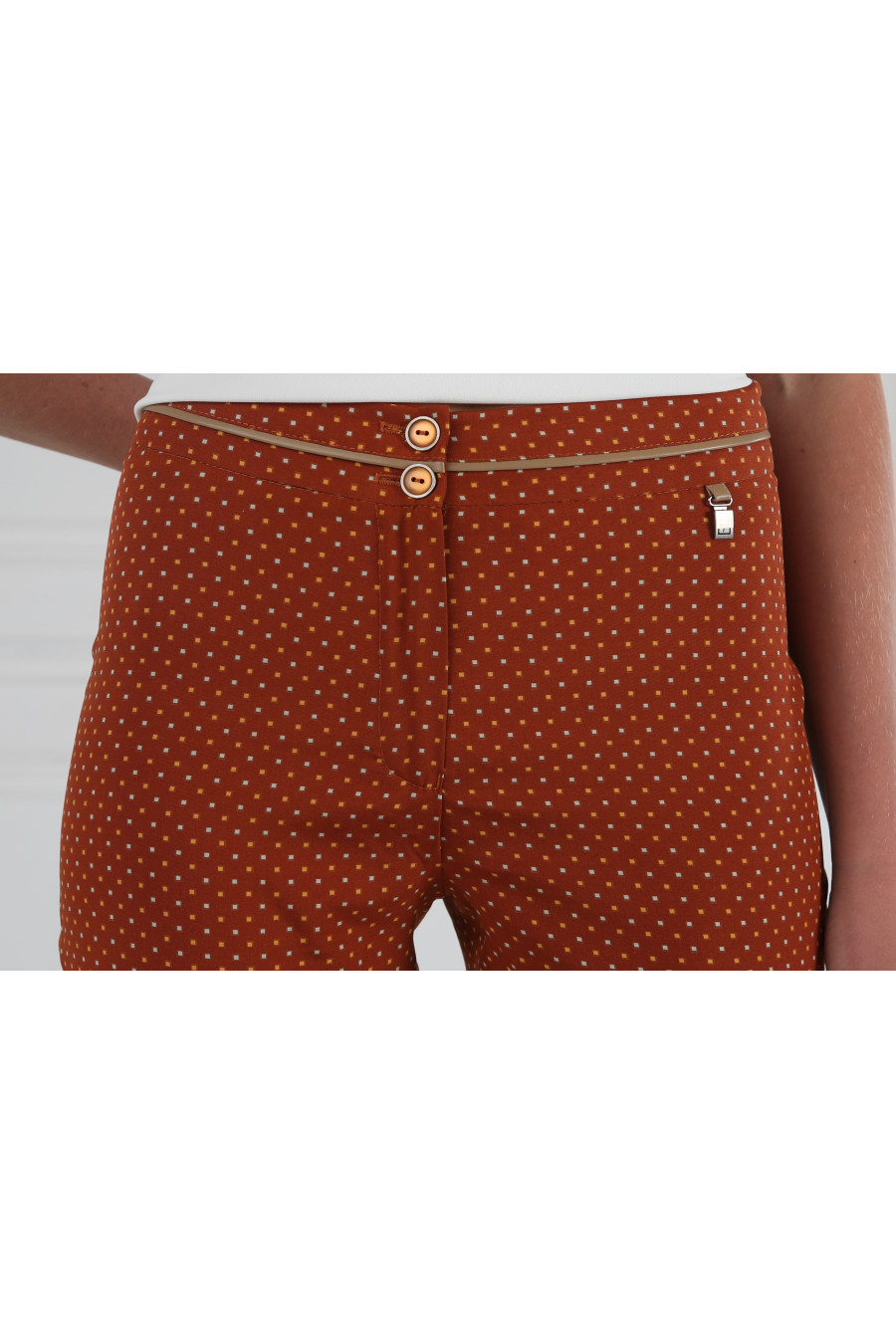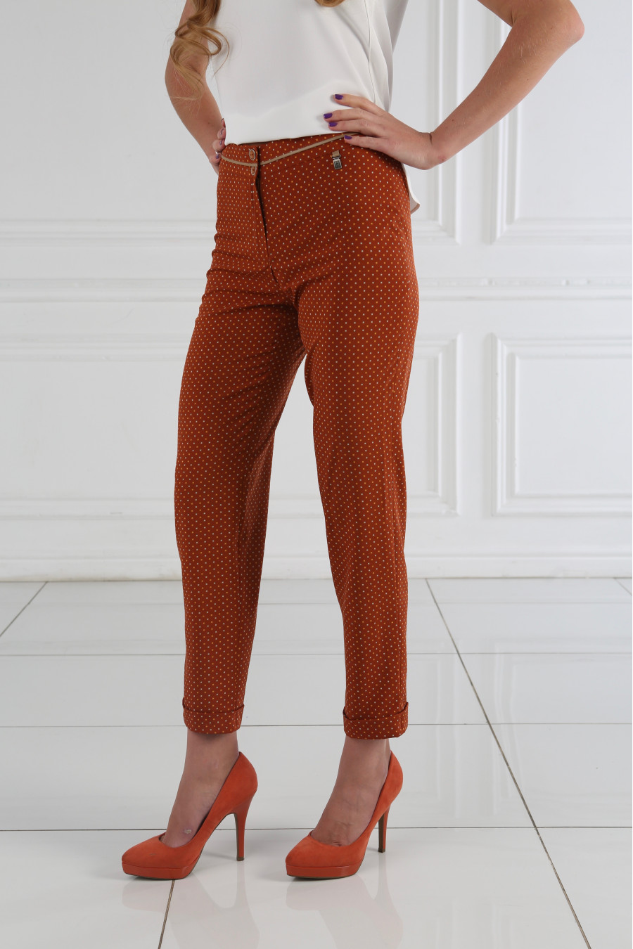 Брюки кирпичные на средней посадке зауженные к низу 7/8 "Шелк Ниагара"