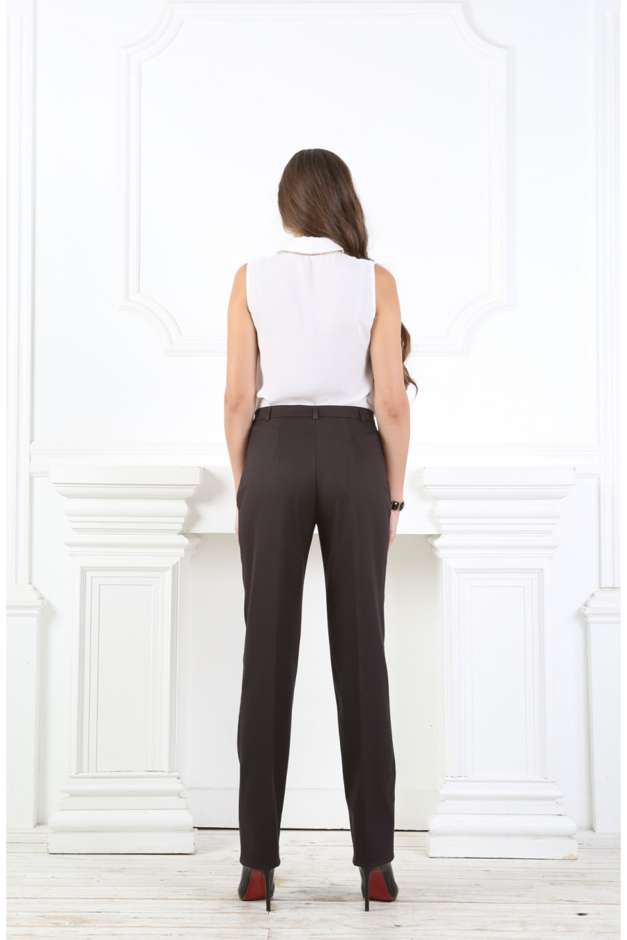 Брюки на высокой посадке зауженные к низу с кантом «Клетка Палермо» коричневые