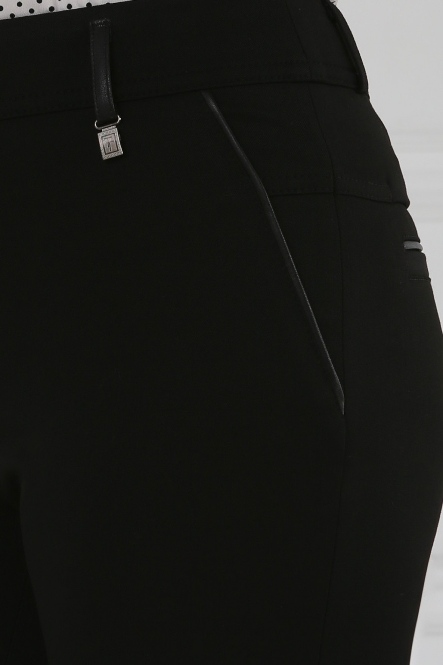 Брюки на средней посадке зауженные к низу и отделкой из кожи "Броди" черные