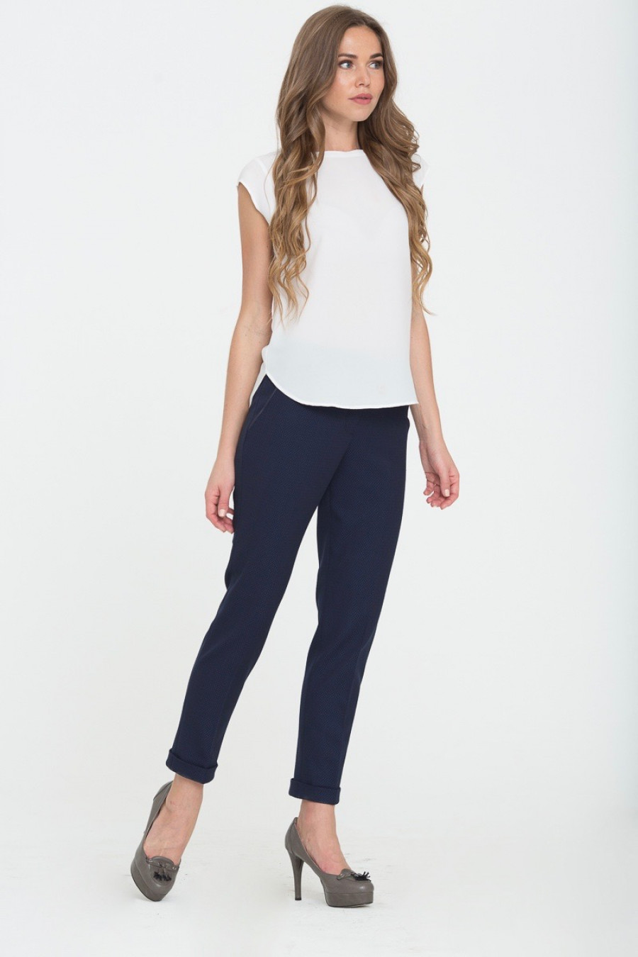 Брюки на средней посадке зауженные к низу 7/8 "Рим" синие