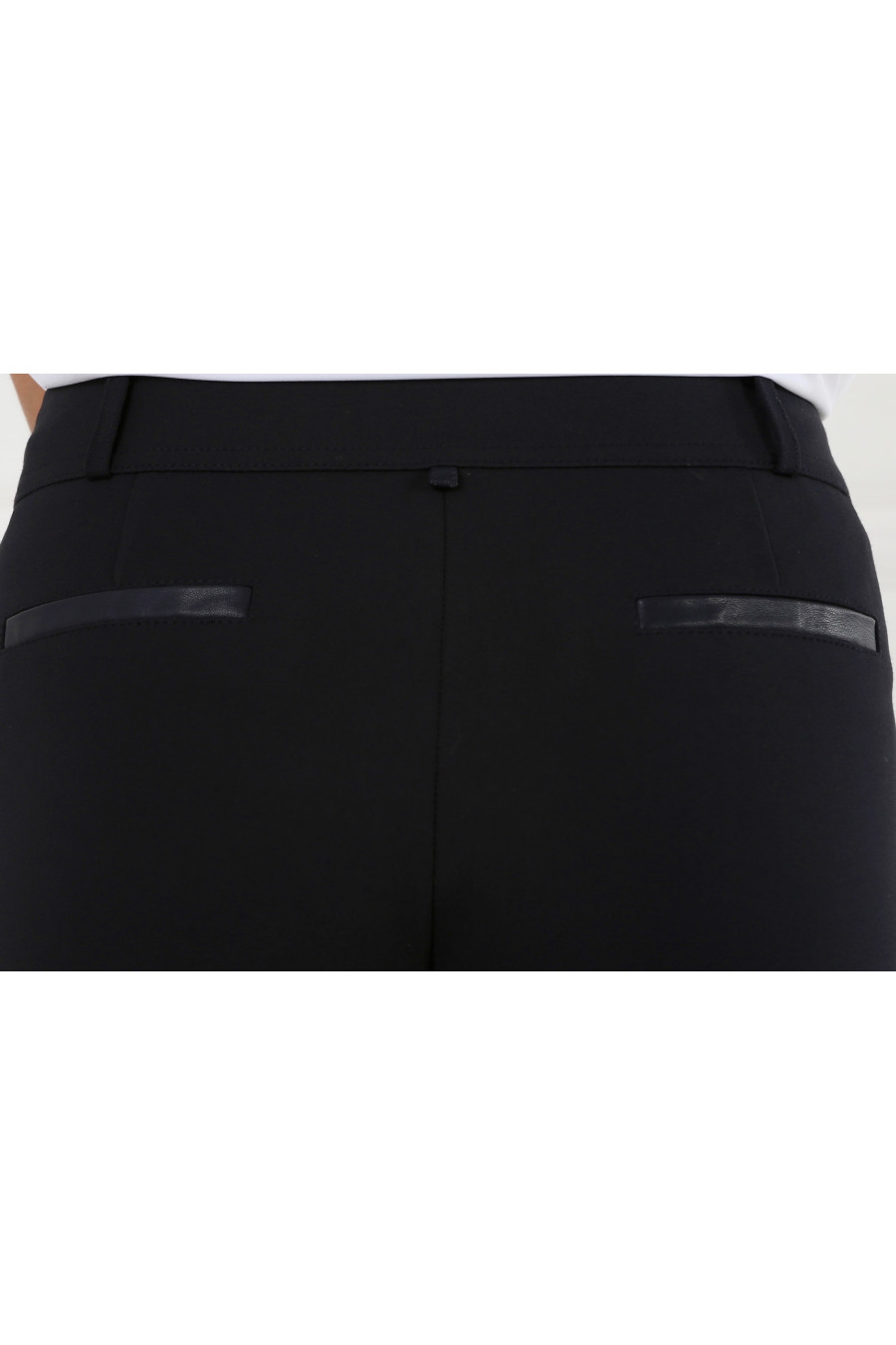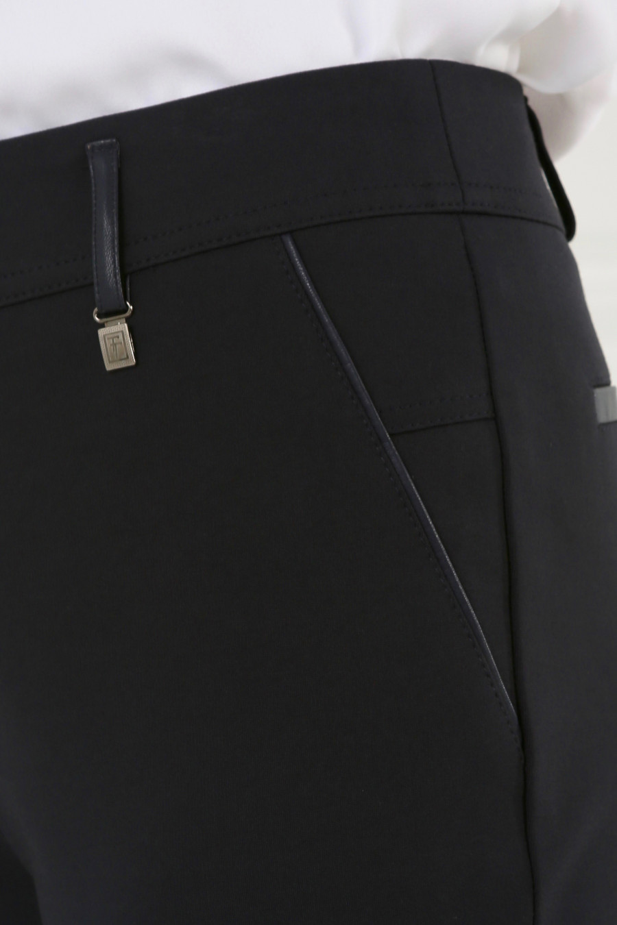 Брюки на средней посадке зауженные к низу и отделкой из синей кожи "Трикотаж" темно-синие