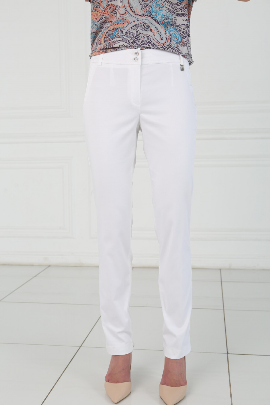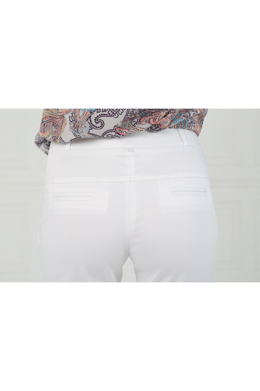 Брюки на средней посадке зауженные к низу с карманами 7/8 Хлопок белый