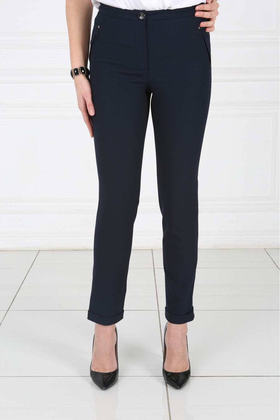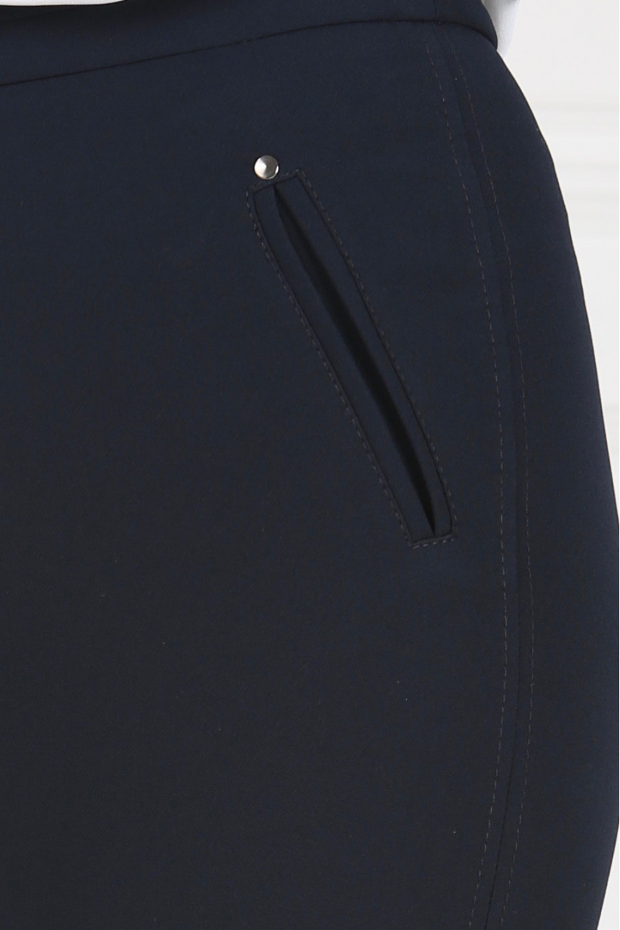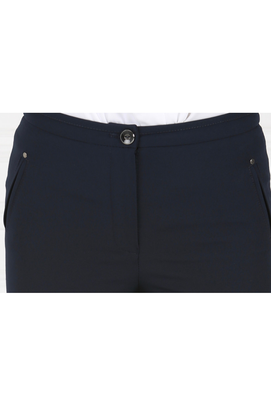 Брюки темно-синие на средней посадке узкие с отделкой из кожи 7/8 "Румба"