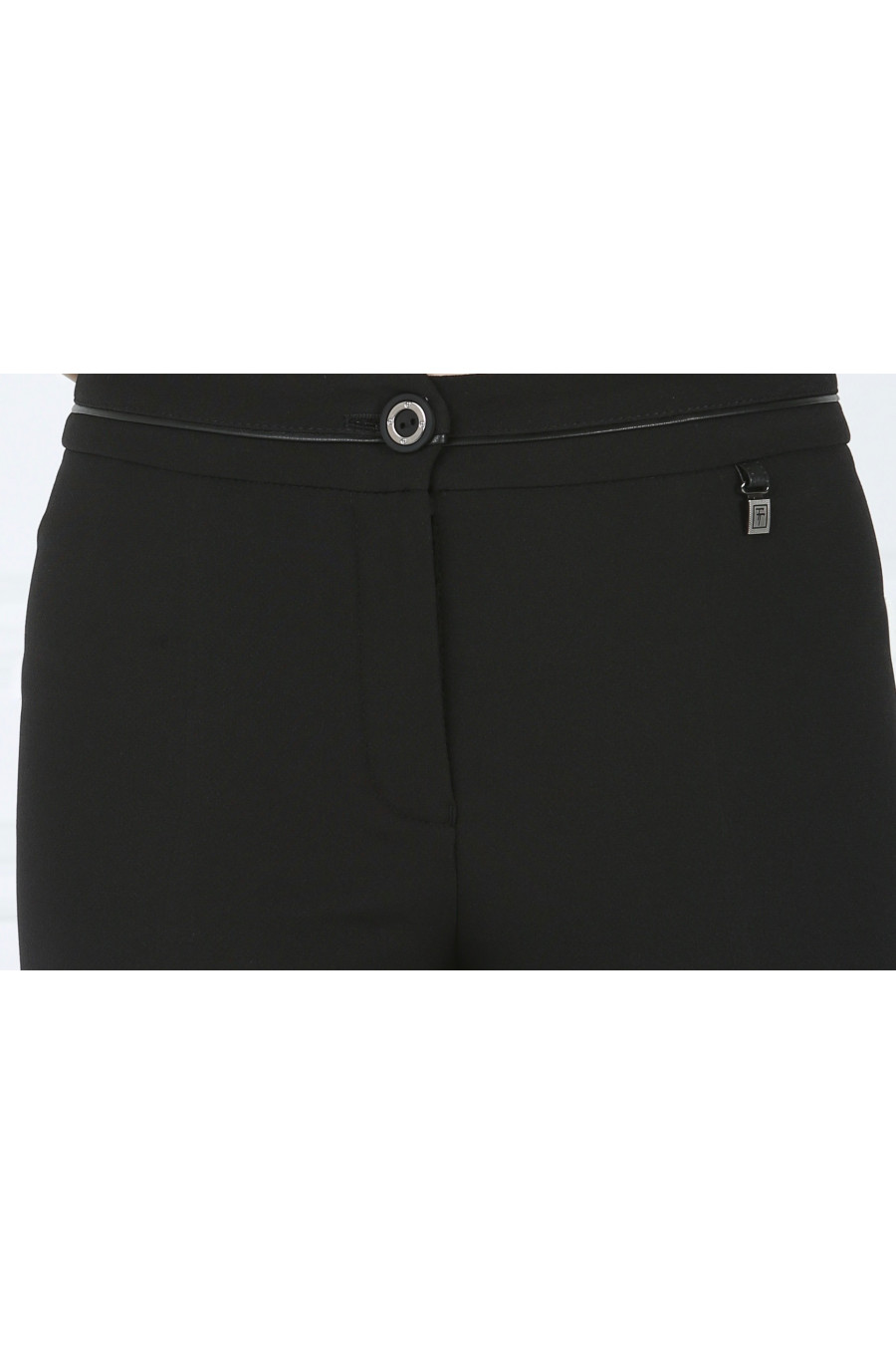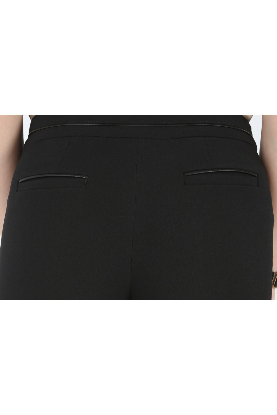 Брюки черные на средней посадке зауженные к низу с кожаным кантом "Джульетта"