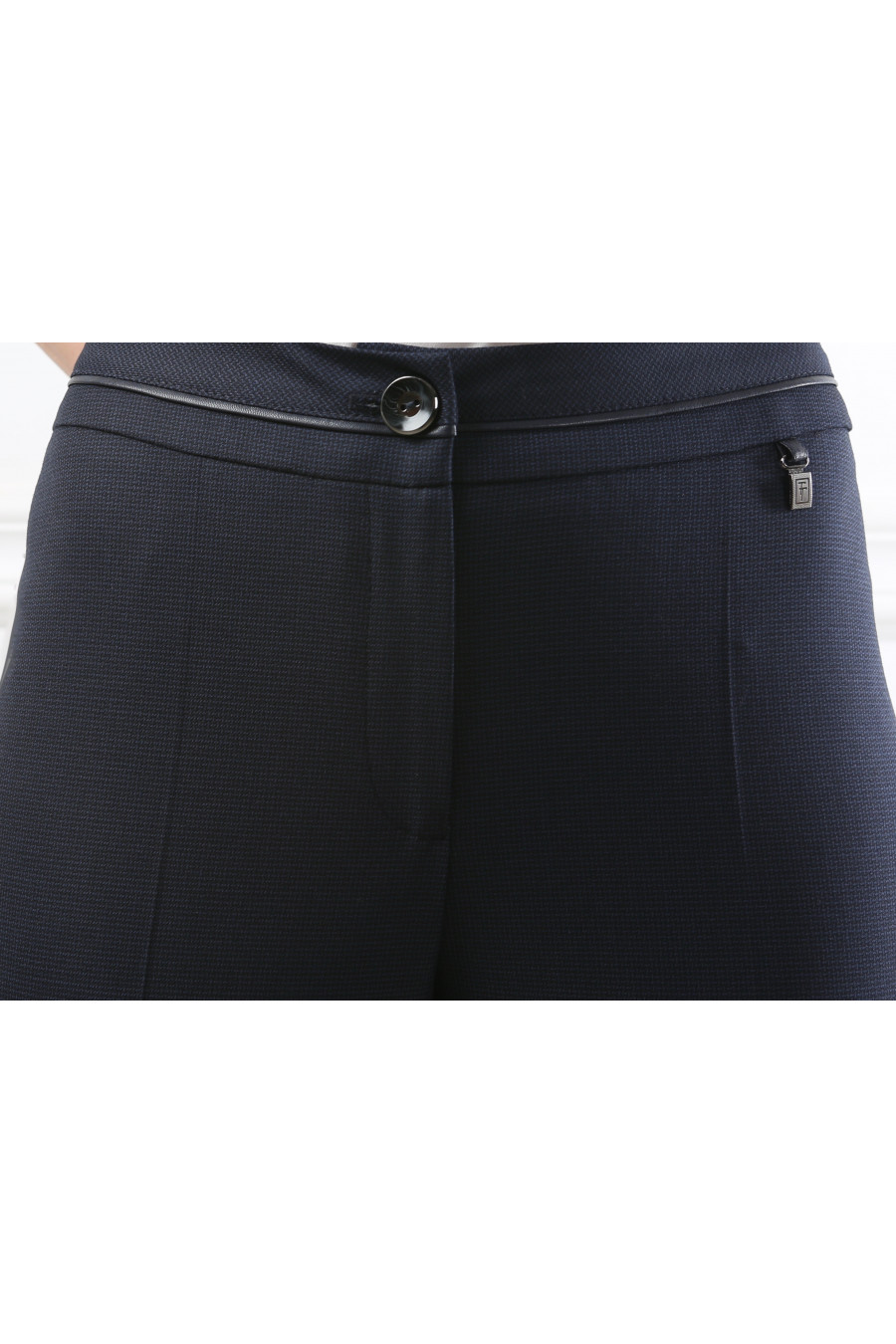 Брюки синие на средней посадке зауженные к низу с отделкой из синей кожи - «Танго»