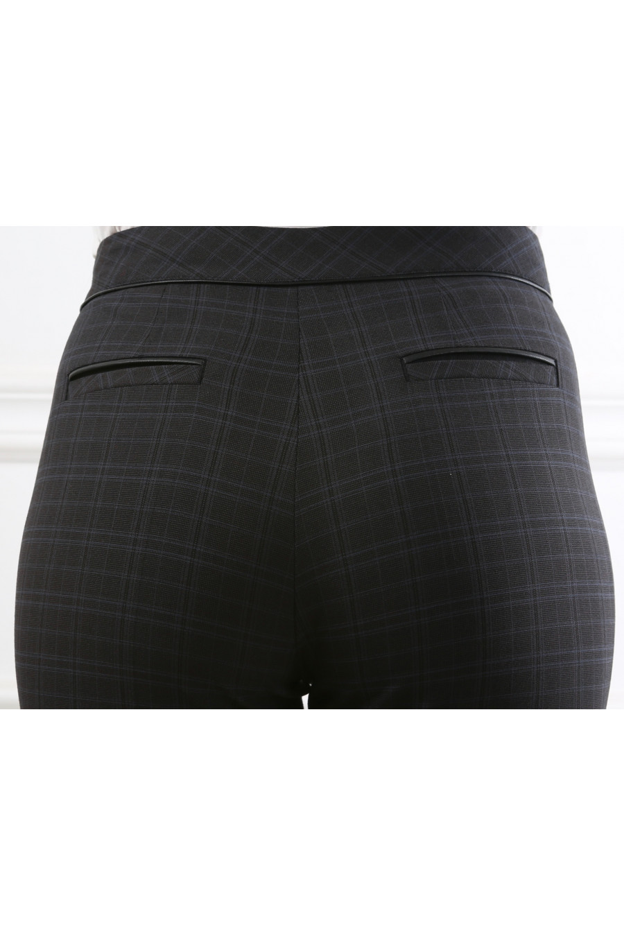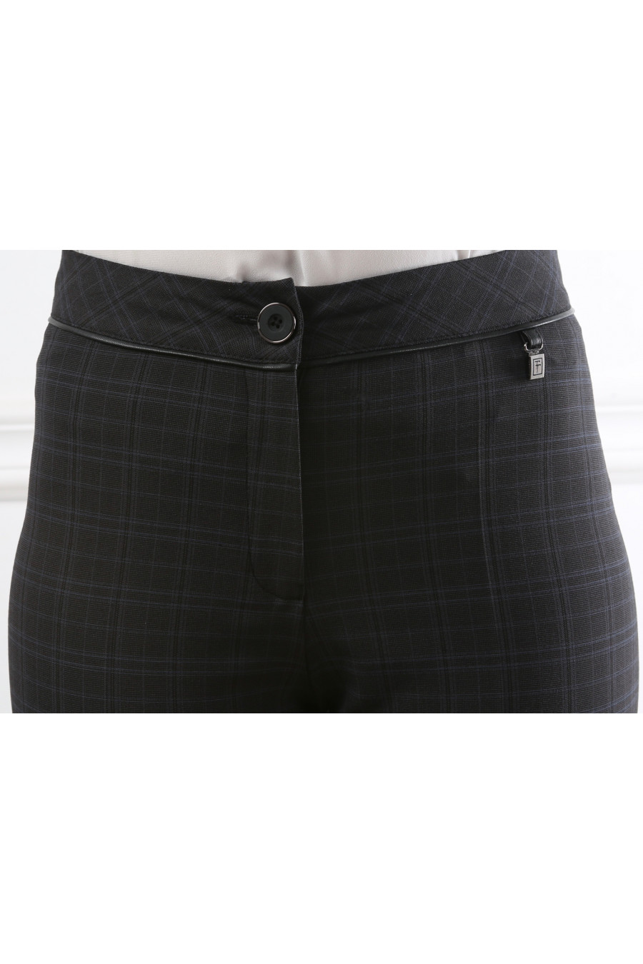 Брюки на средней посадке зауженные к низу с отделкой из кожи "Клетка Бентли"синие