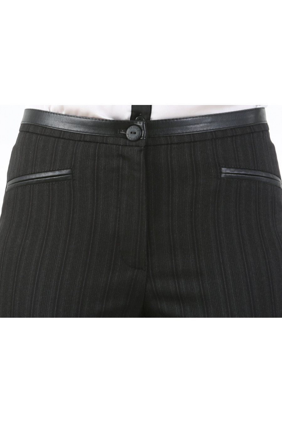 Брюки на средней посадке зауженные с отделкой из кожи 7/8 «Полоска Резорт» серые