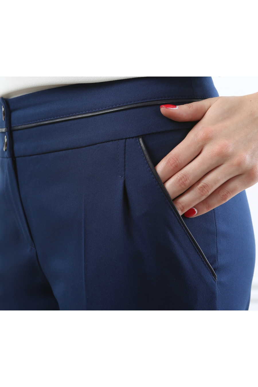 Брюки на средней посадке зауженные к низу "Вальтерра"синие с синей кожей