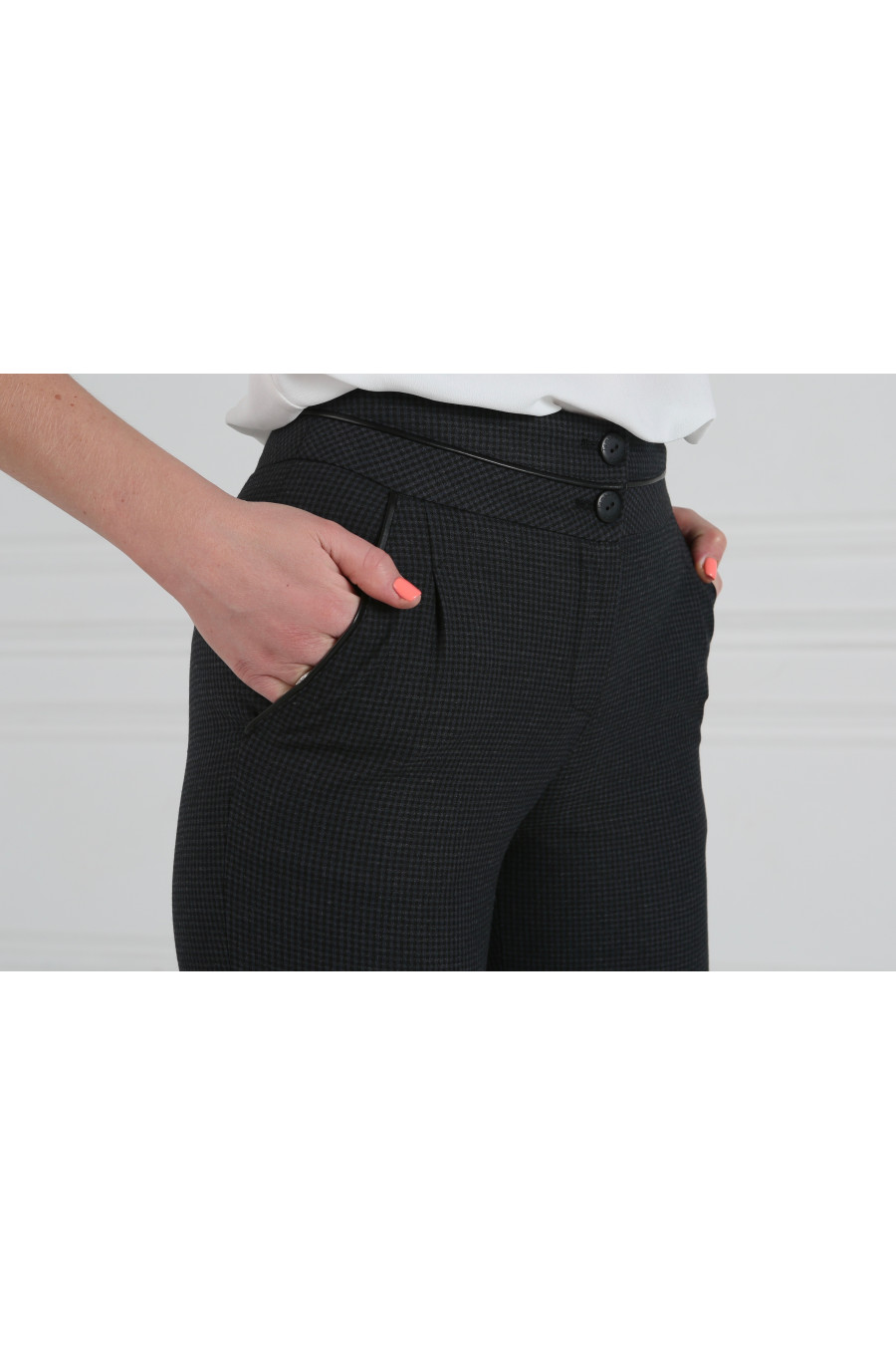 Брюки на средней посадке зауженные к низу в манжетами 7/8 "Шарлотта" серо-черные