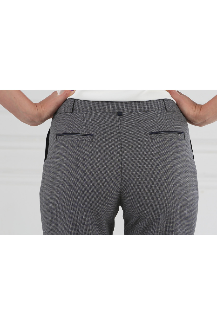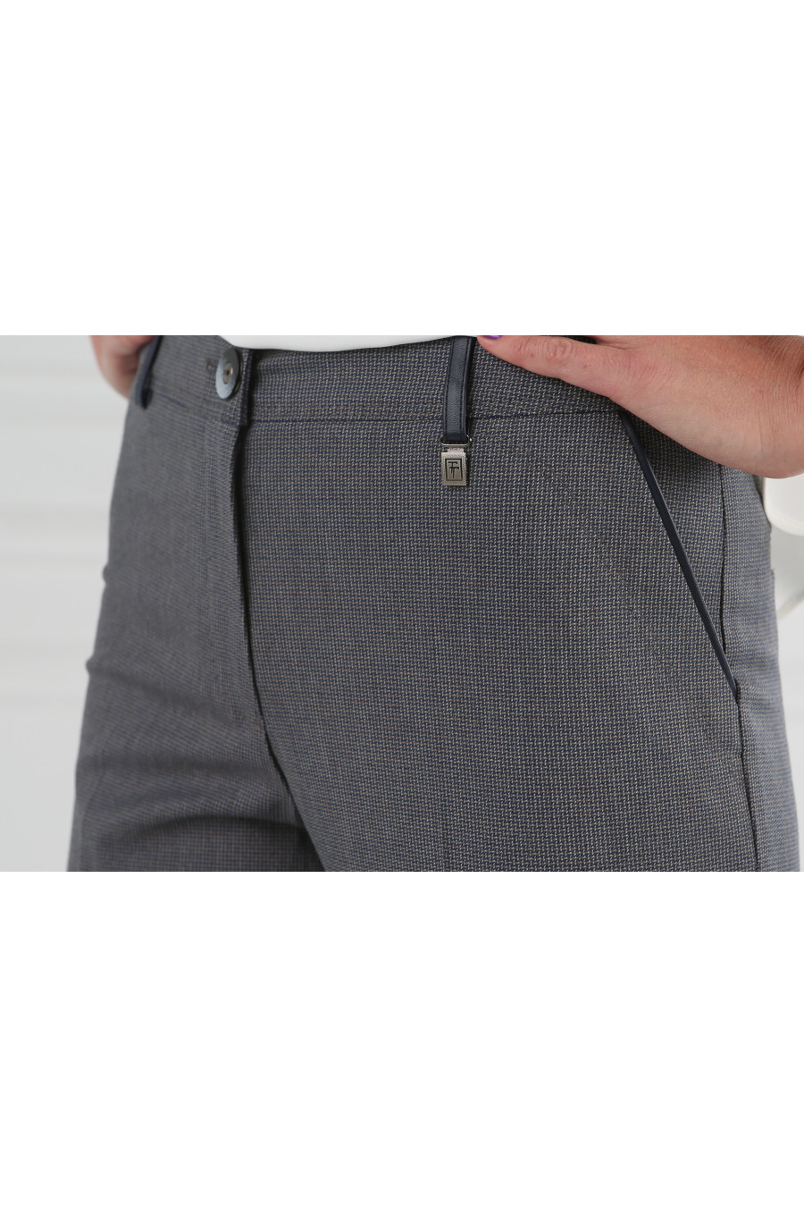 Брюки серо-синие на средней посадке зауженные к низу с отделкой из кожи "Танго"