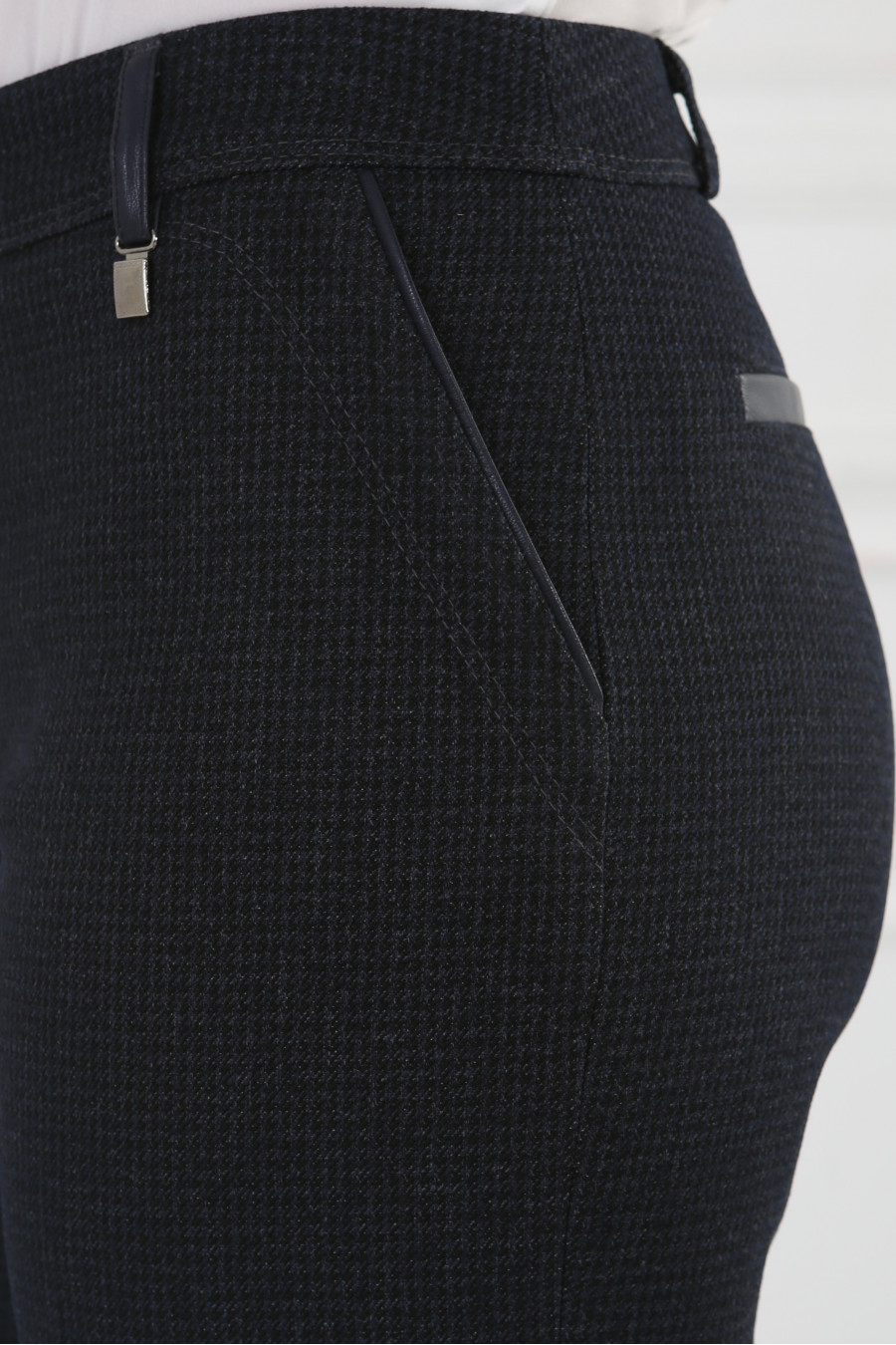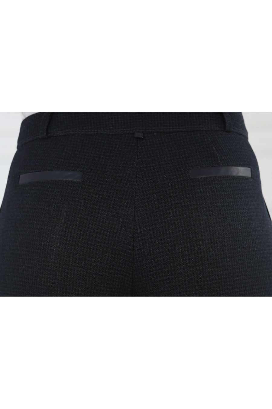 Брюки на средней посадке прямые от бедра "Виндзор"черно-синие с отделкой из кожи