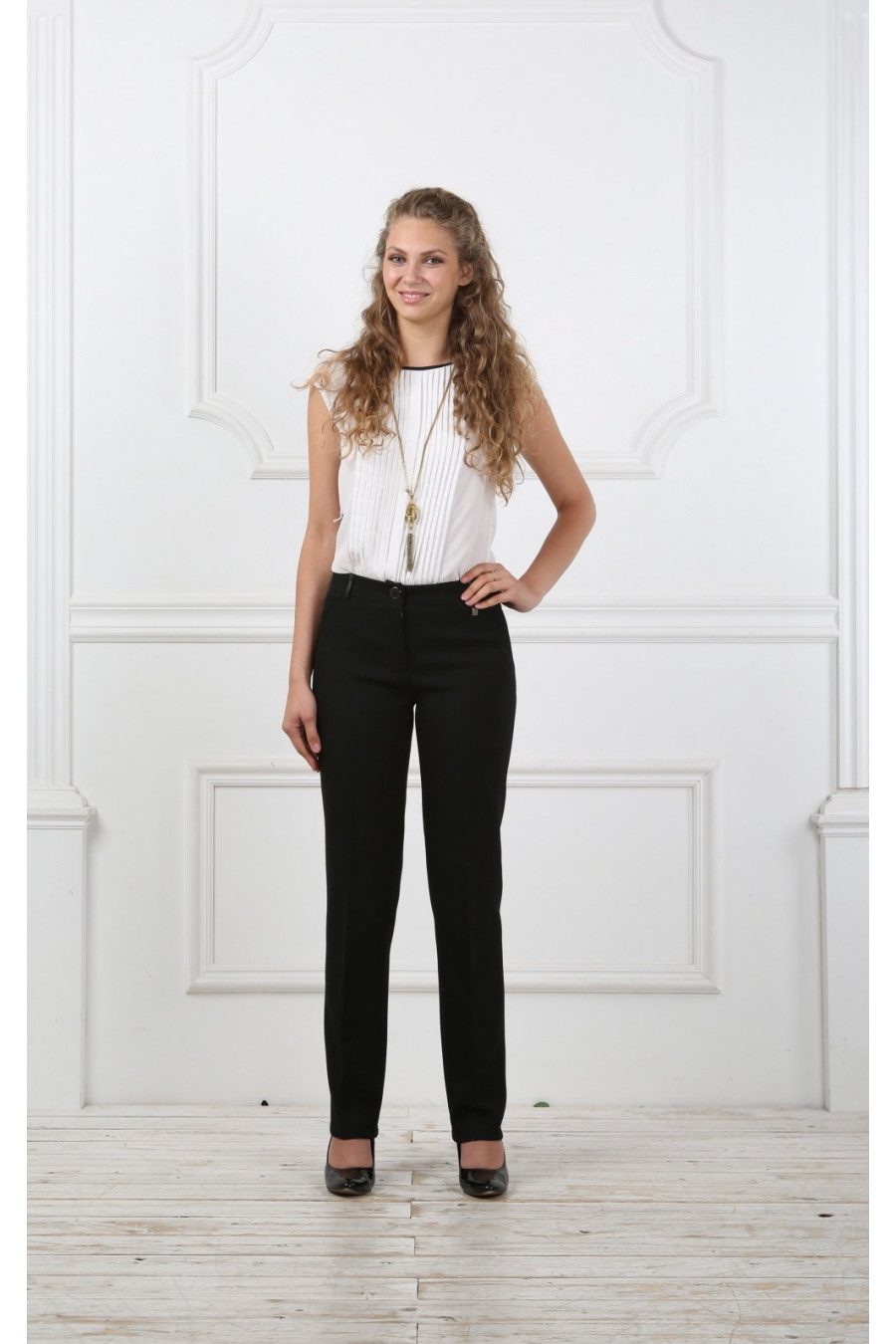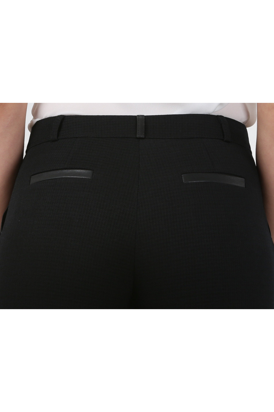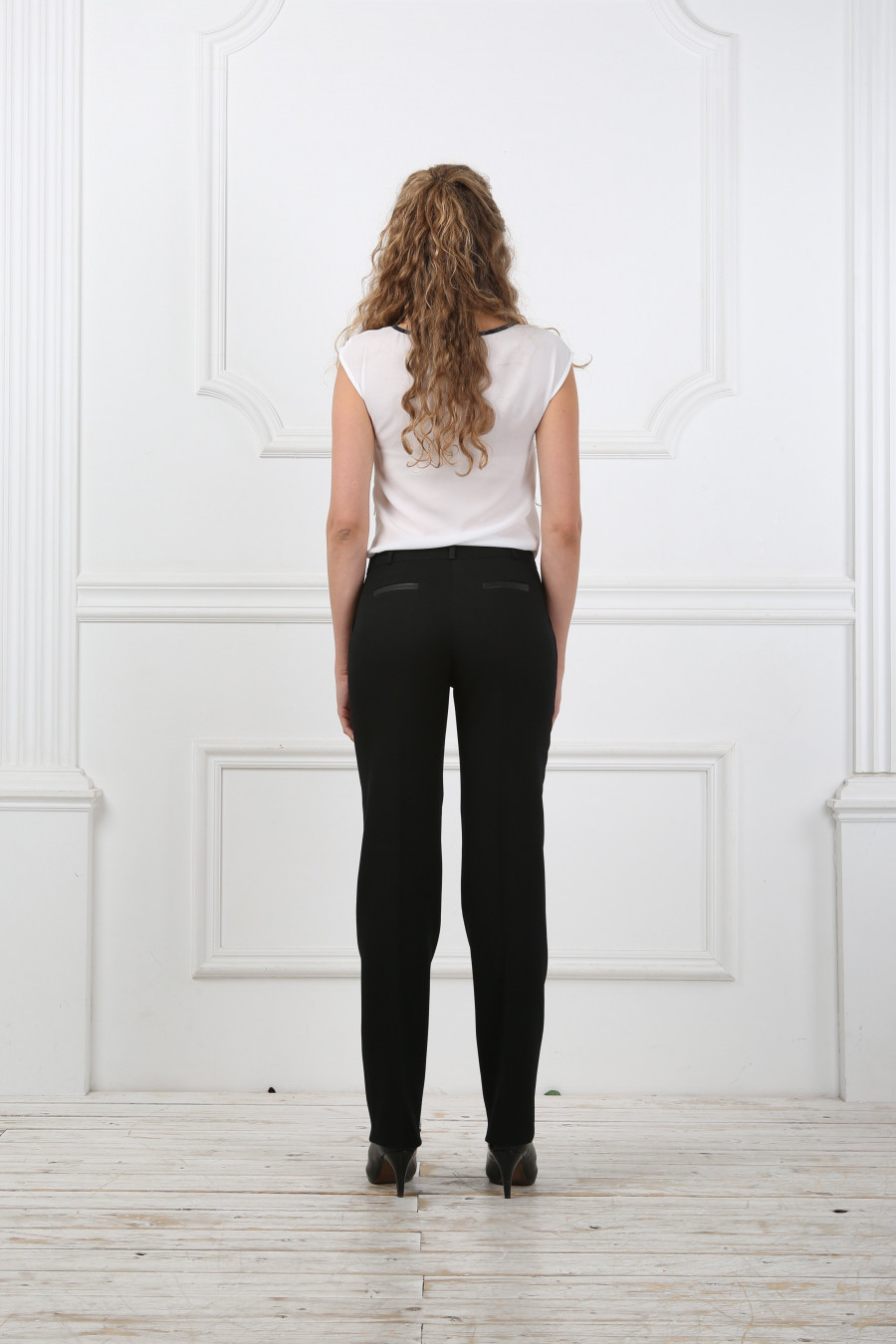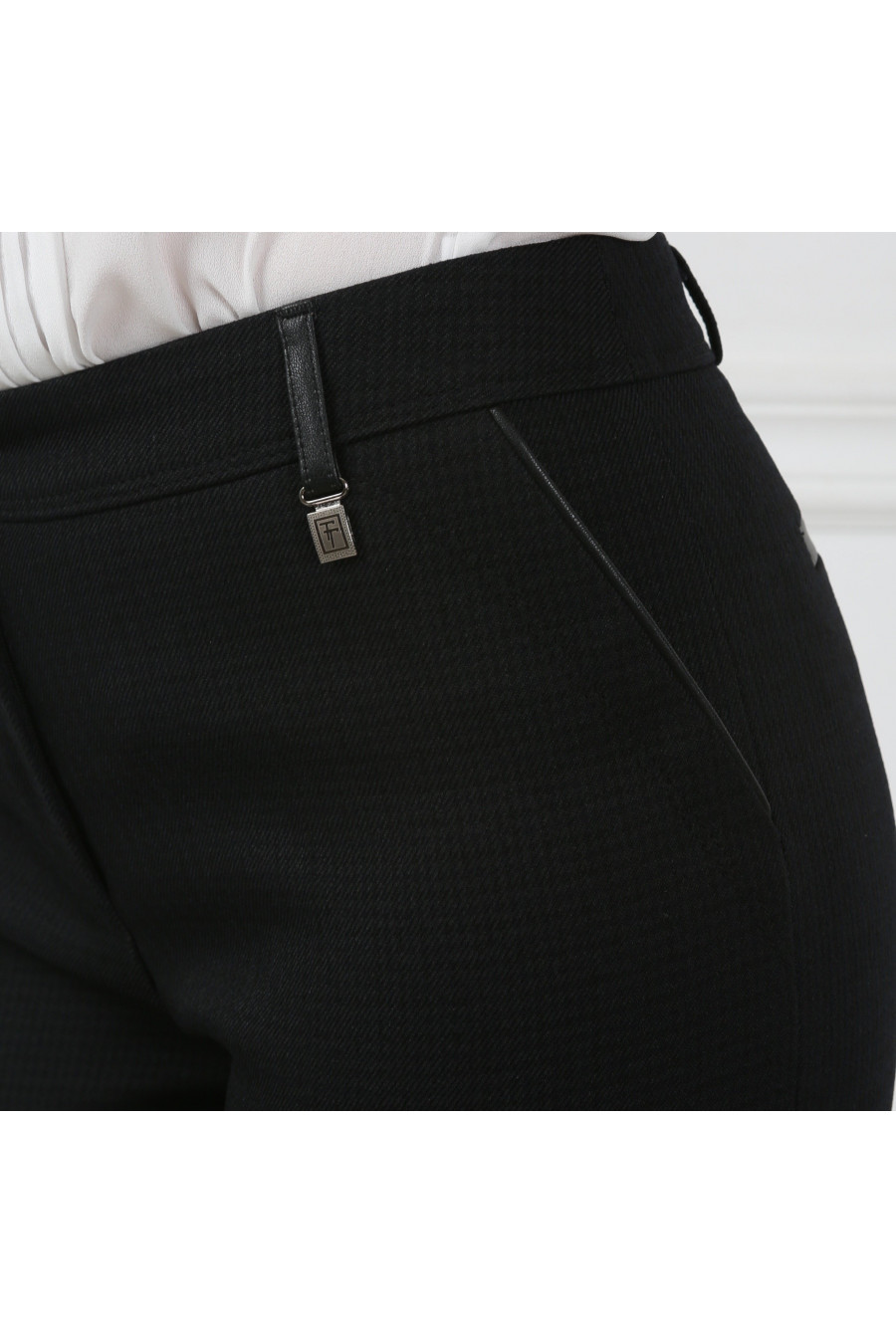 Брюки черно-коричневые с отделкой из кожи на средней посадке прямые от бедра - «Виндзор»