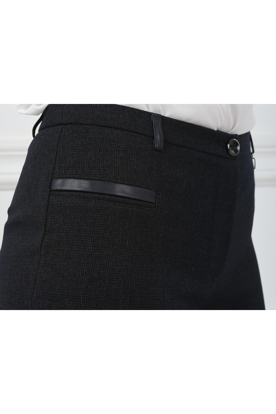 Брюки на высокой посадке прямые от бедра "Пье-де-Пуль"синие с отделкой из кожи