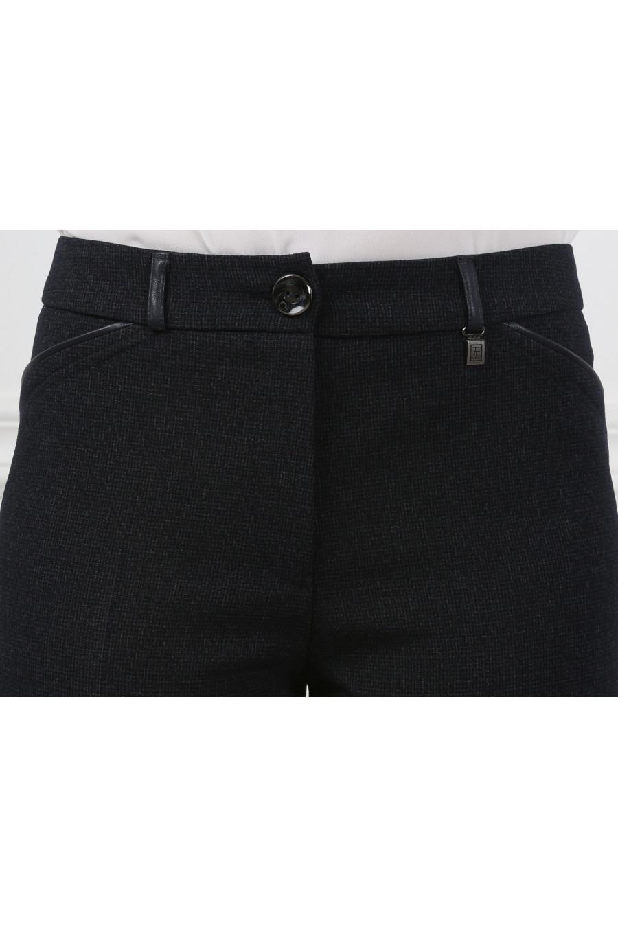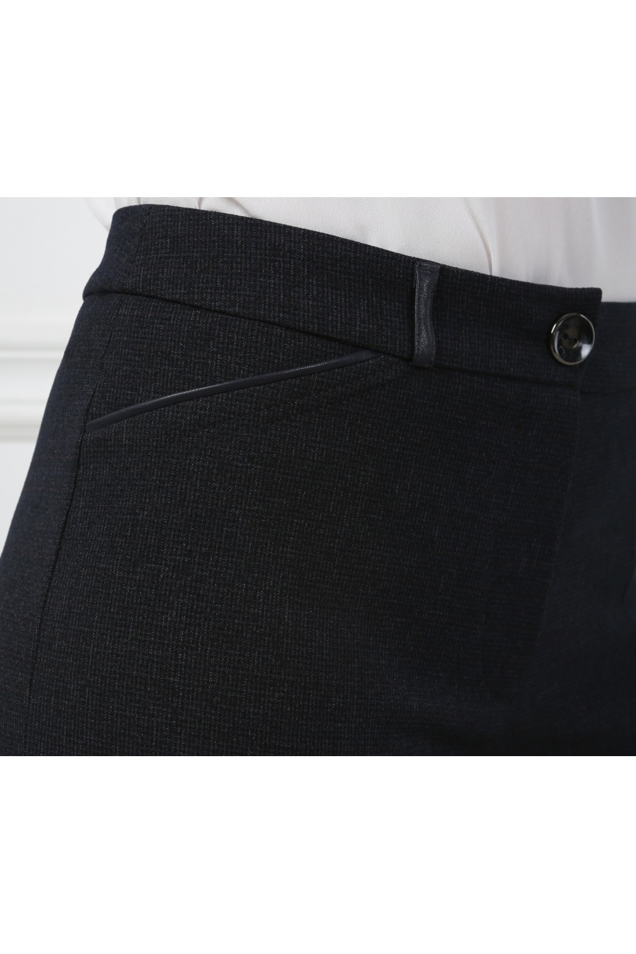 Брюки на средней посадке прямые от бедра "Пье-де-Пуль" синие с отделкой из кожи
