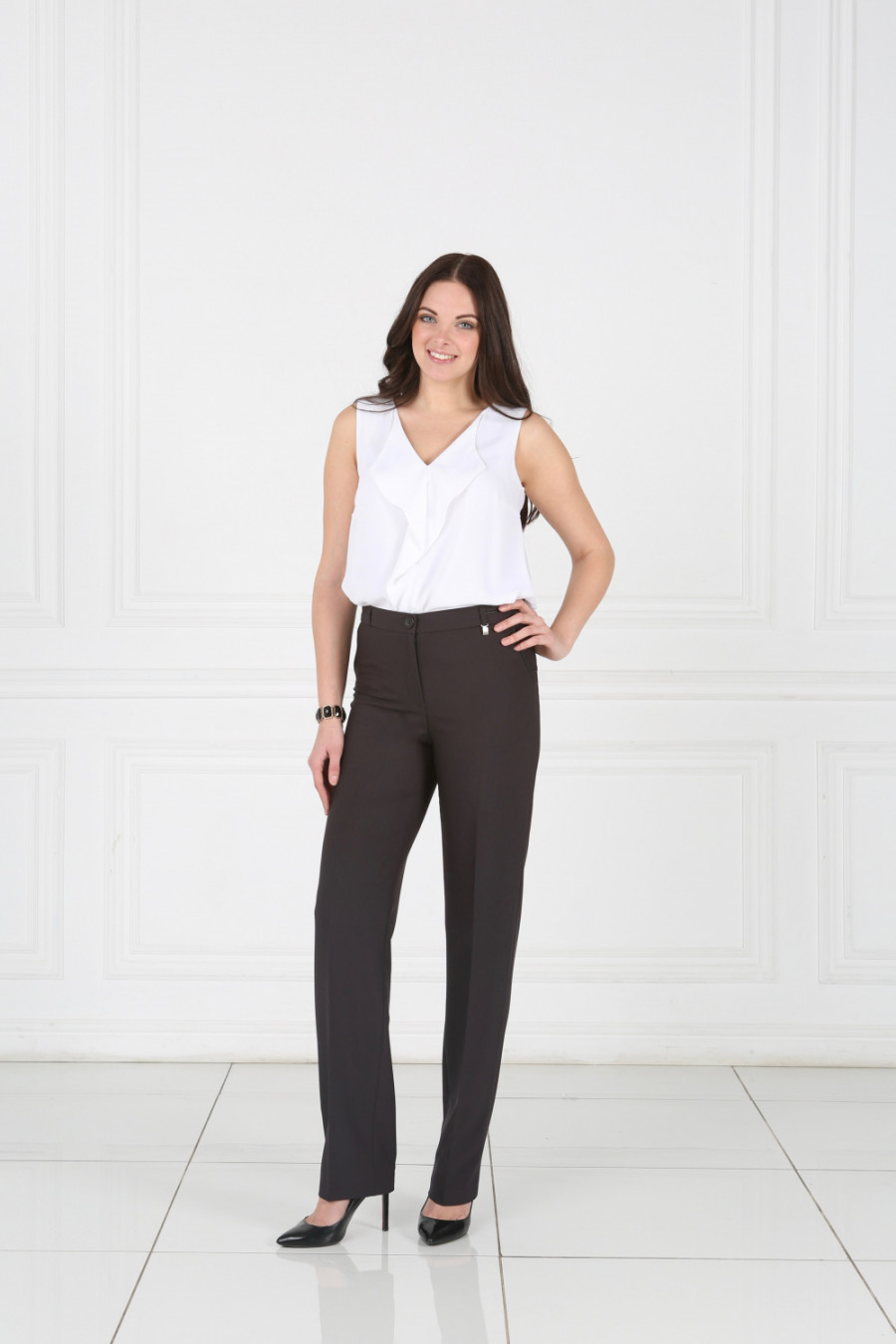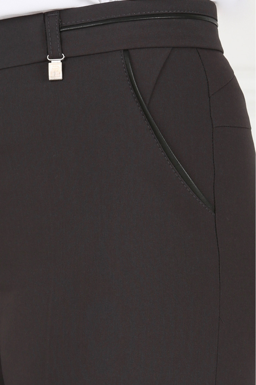 Брюки серые на высокой посадке прямые от бедра с отделкой из кожи "Модерн"