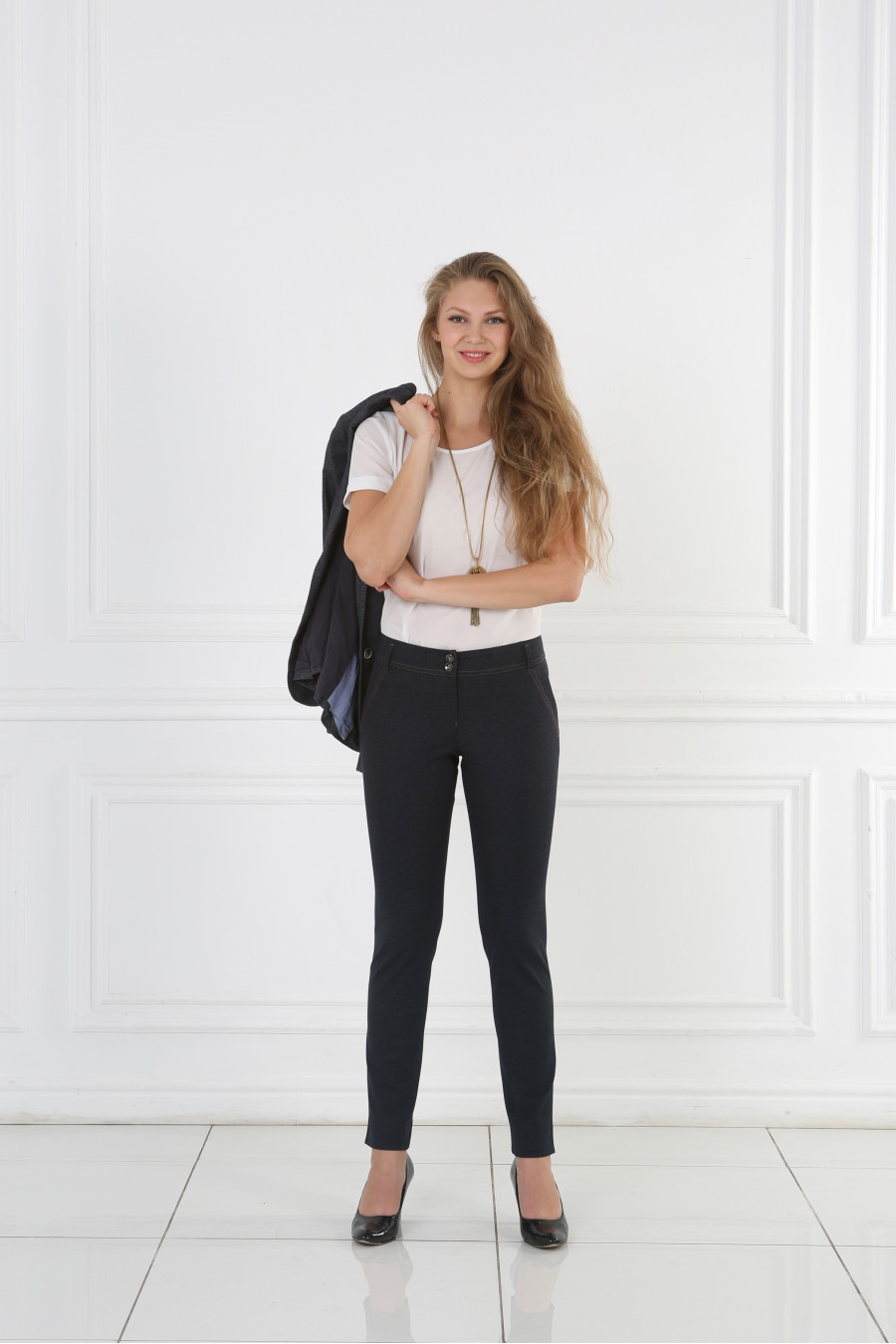 Брюки на средней посадке зауженные к низу укороченные "Трикотаж"Джинса" темно-синие