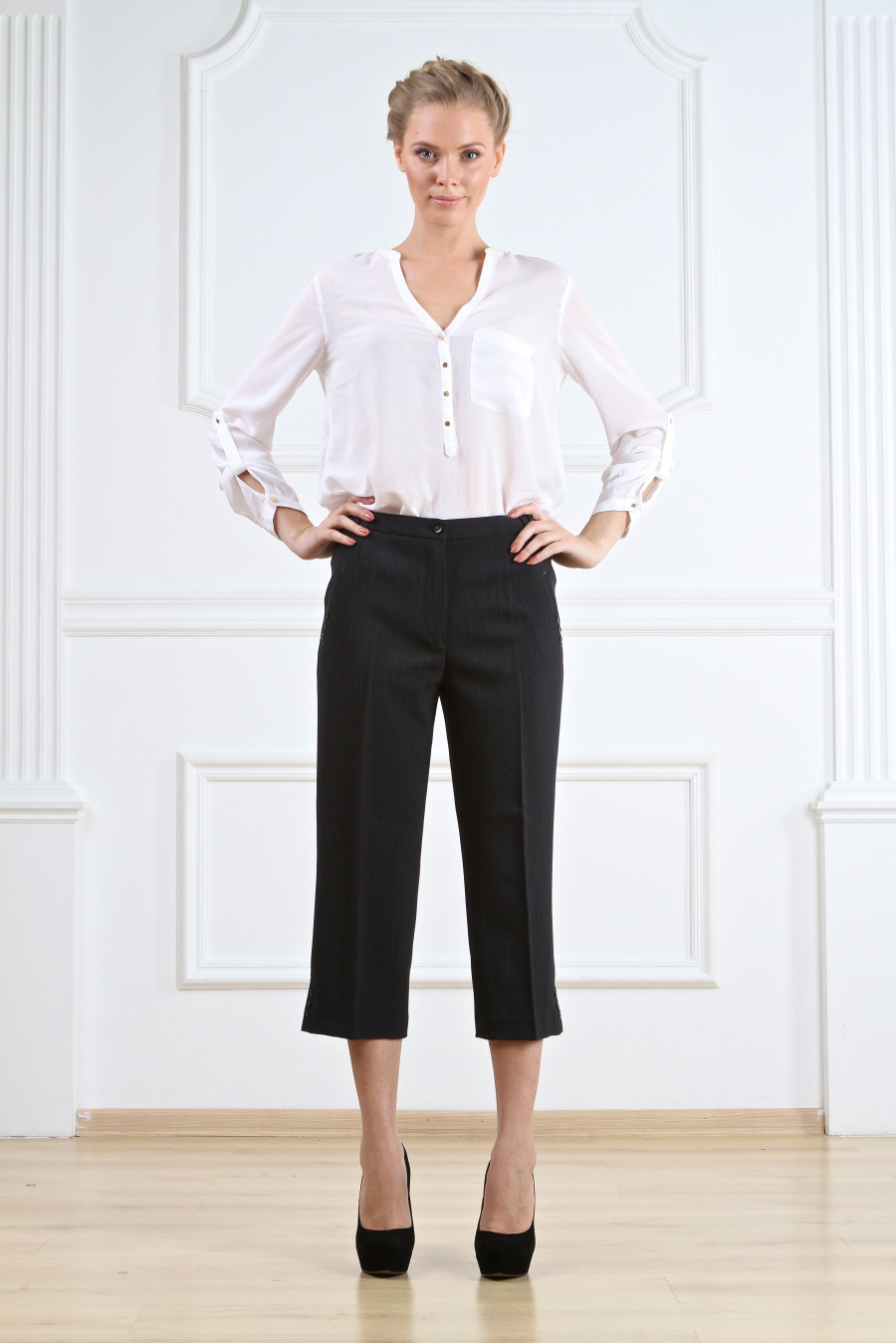 Капри на высокой посадке прямые от бедра с шлицей. Флоренция,темно-серые