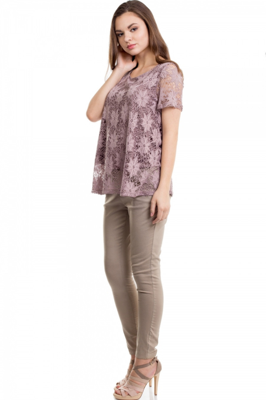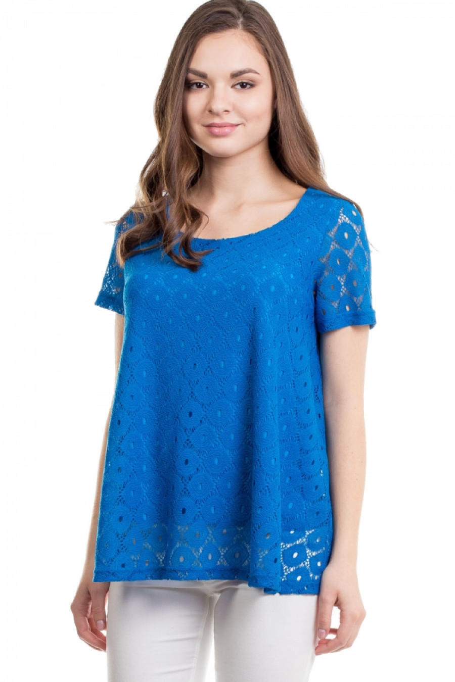 Женская футболка свободного кроя, с округлым вырезом горловины, с короткими рукавами, полностью из натурального материала. Модель имеет однотонную расцвету. Длина джемпера 68 см.