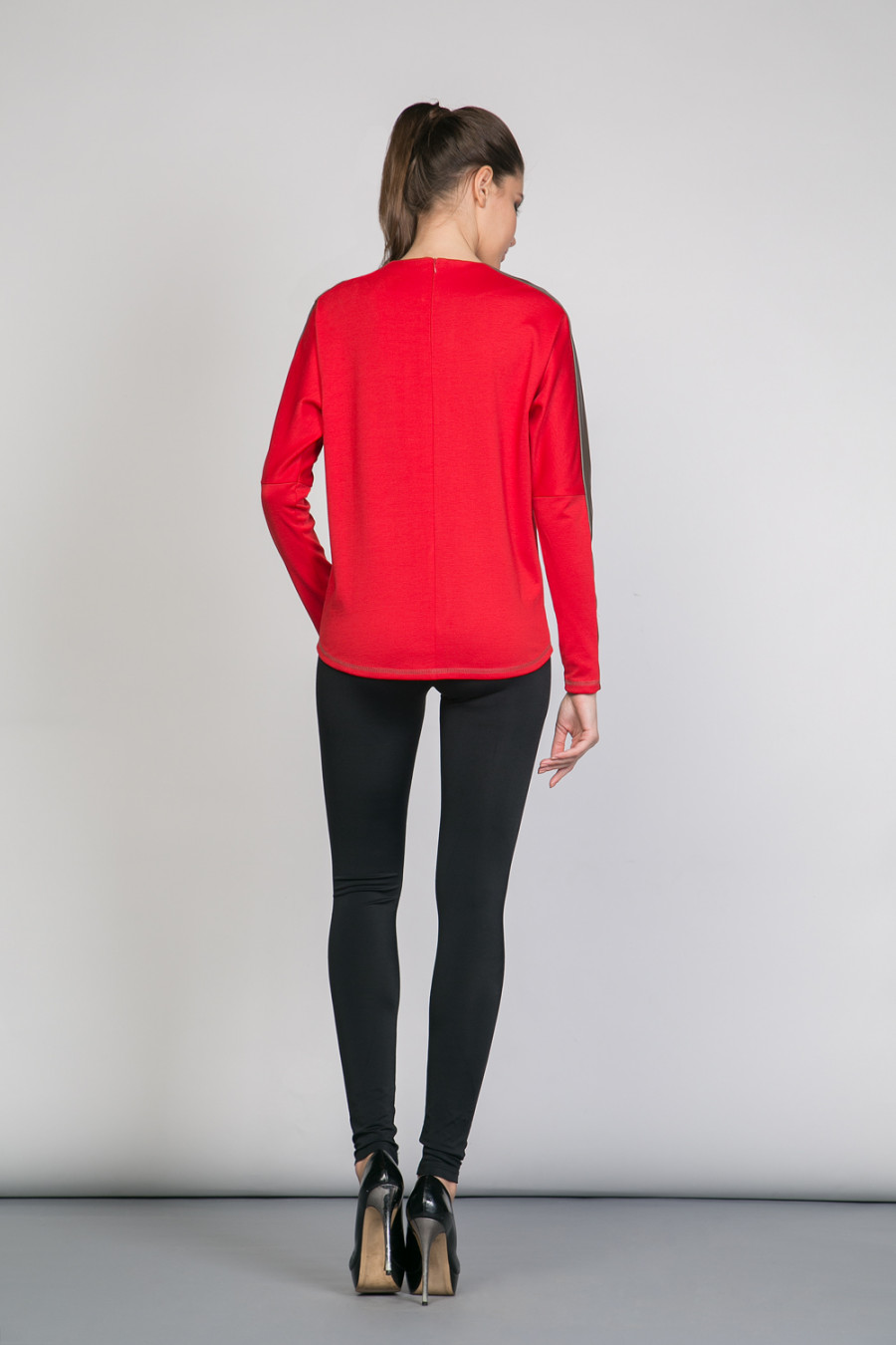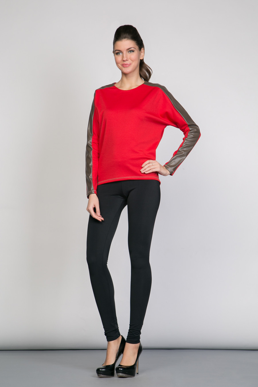 Джемпер с длинными рукавами, свободного кроя, со стильными вставками вдоль рукава.
