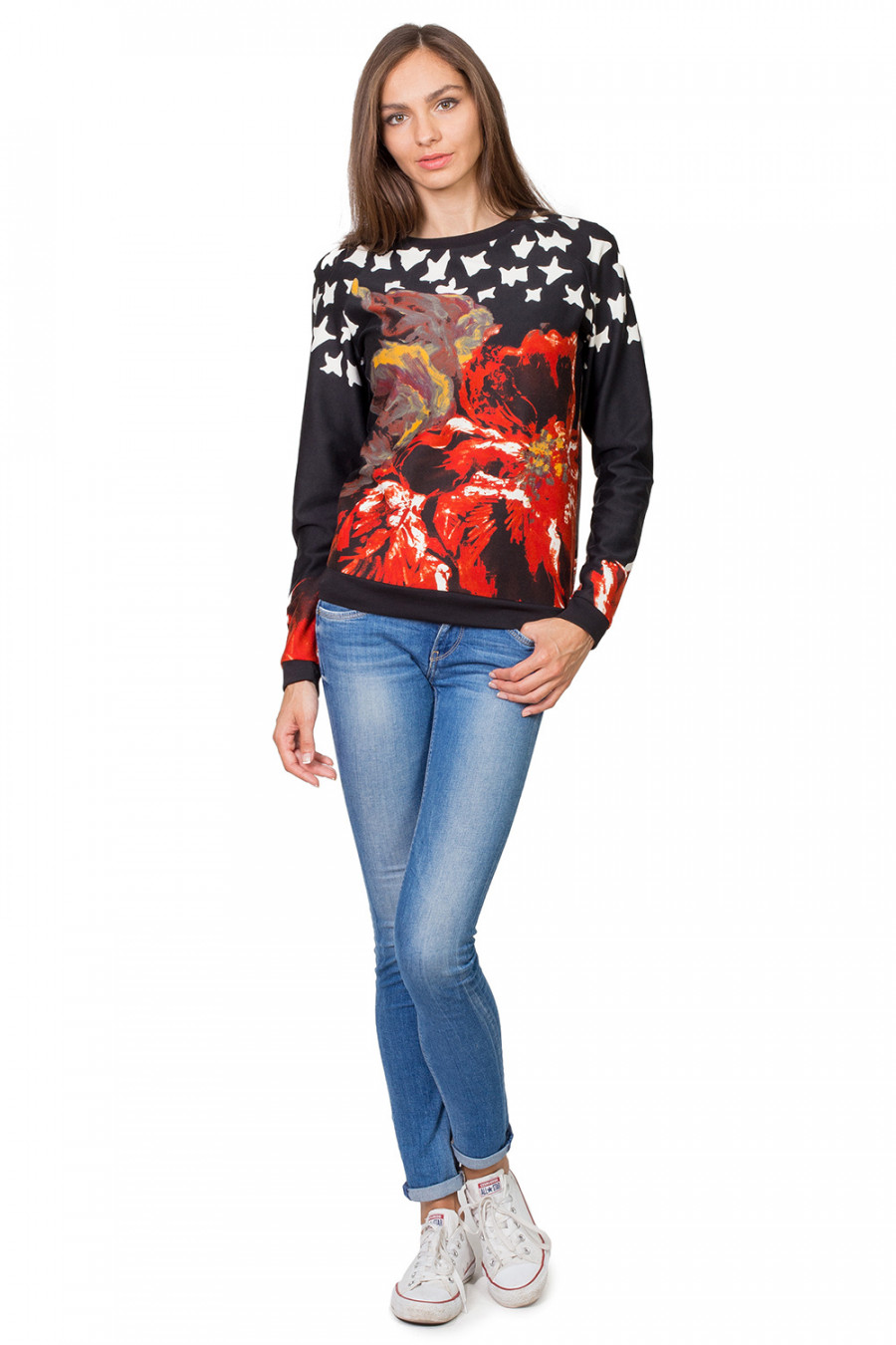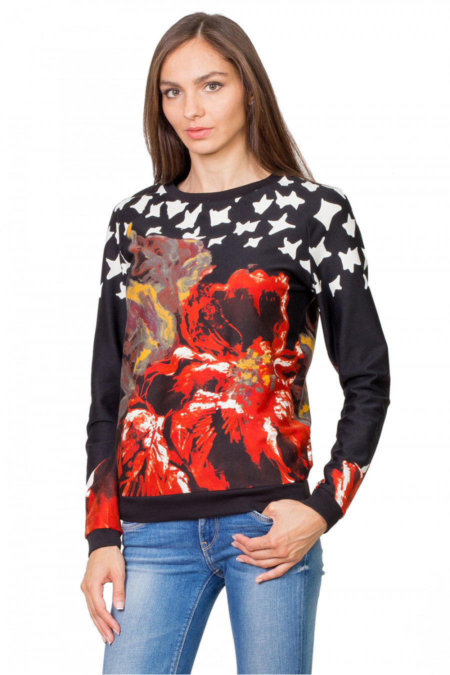 Джемпер с длинными рукавами, с ярким принтом. Отлично подойдет, как к юбке, так и к джинсам.
