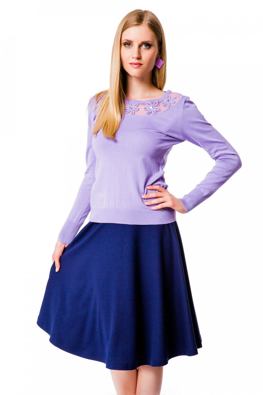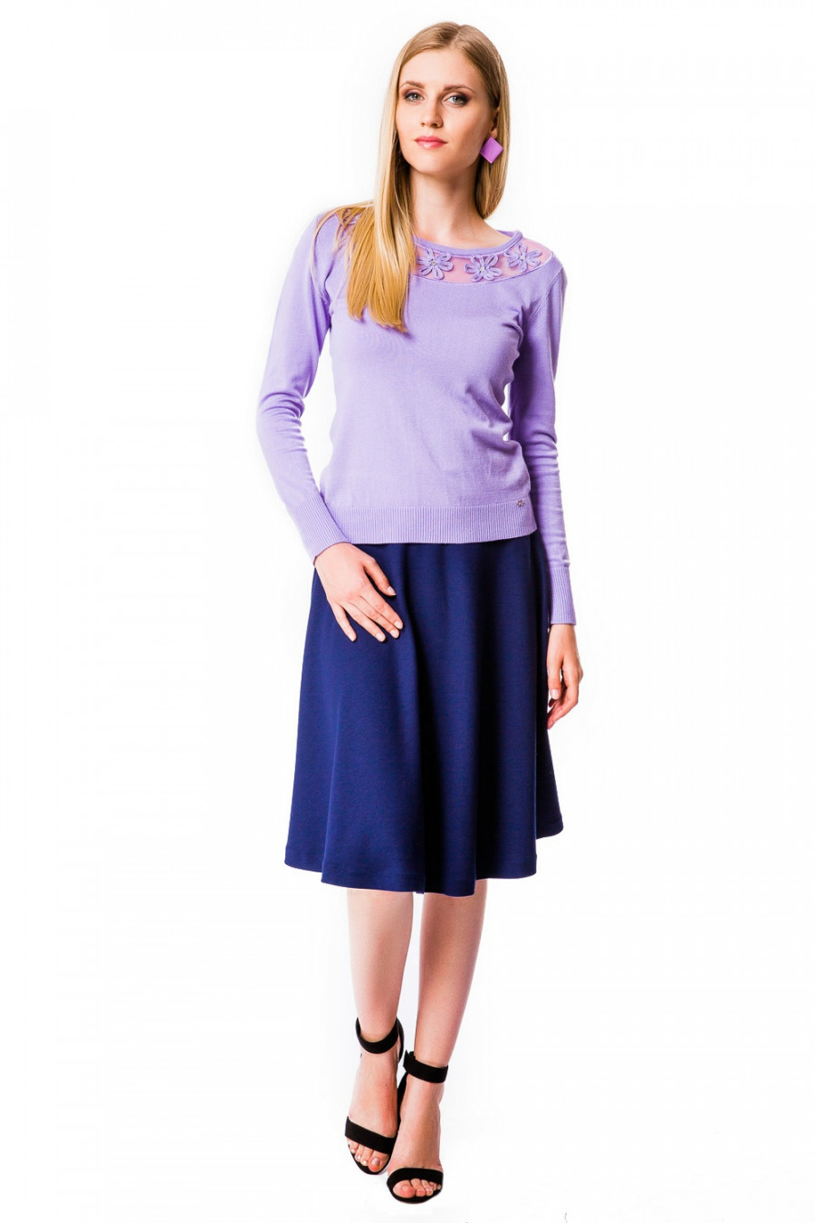 Модный джемпер с округлым вырезом горловины и длинными рукавами. Модель выполнена из высококачественного материала приятной расцветки и декорирована очаровательной ажурной вставкой с аппликацией. Практичный и комфортный вариант на каждый день.