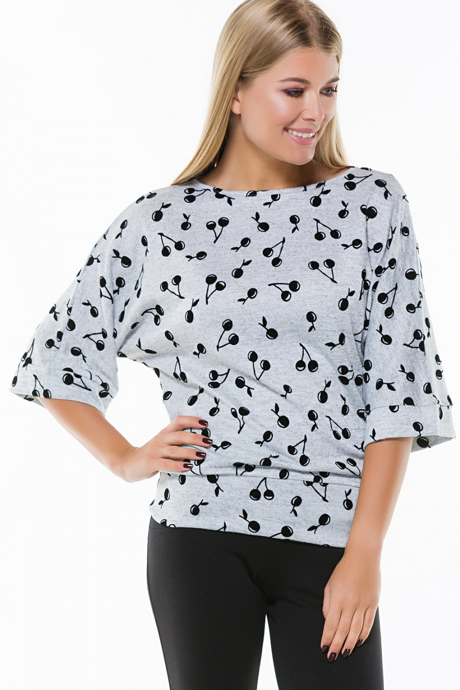 Джемпер с укороченным рукавом. Сужается книзу. Вырез горловины типа лодочка.