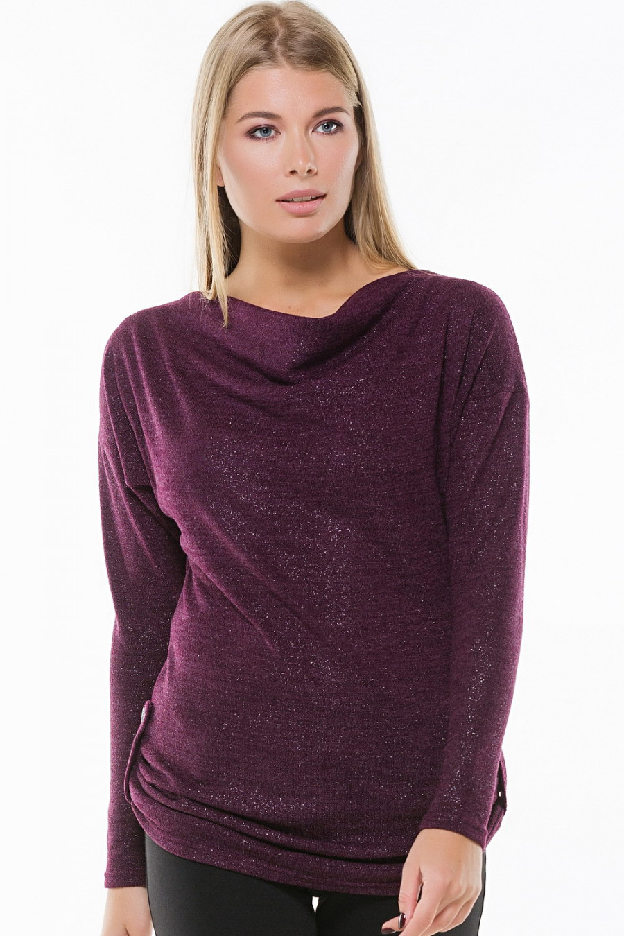 Удлиненный джемпер, присборенный сбоку по нижней части.