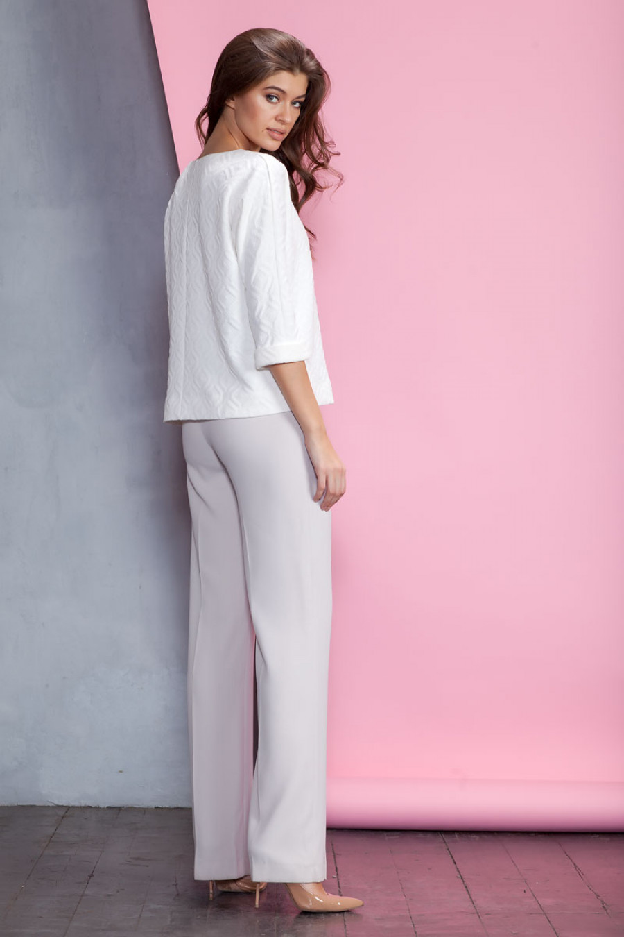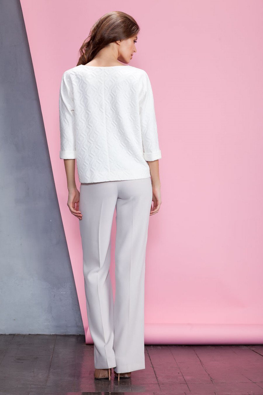 Эффектный свитшот из трикотажа с интересной объемной структурой. Модель свободного кроя с цельнокроенным рукавом 3/4 с манжетом. Отличный вариант для создания образов на каждый день.