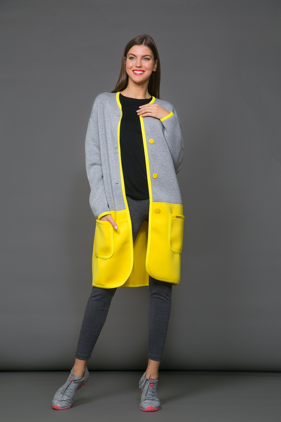 Длинный кардиган на пуговицах с карманами, в два цвета.