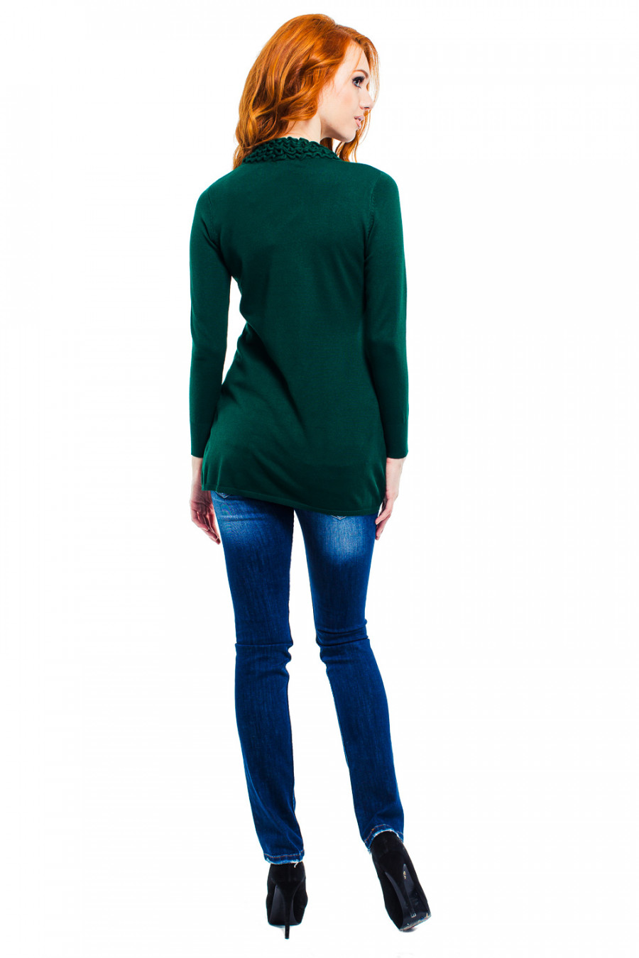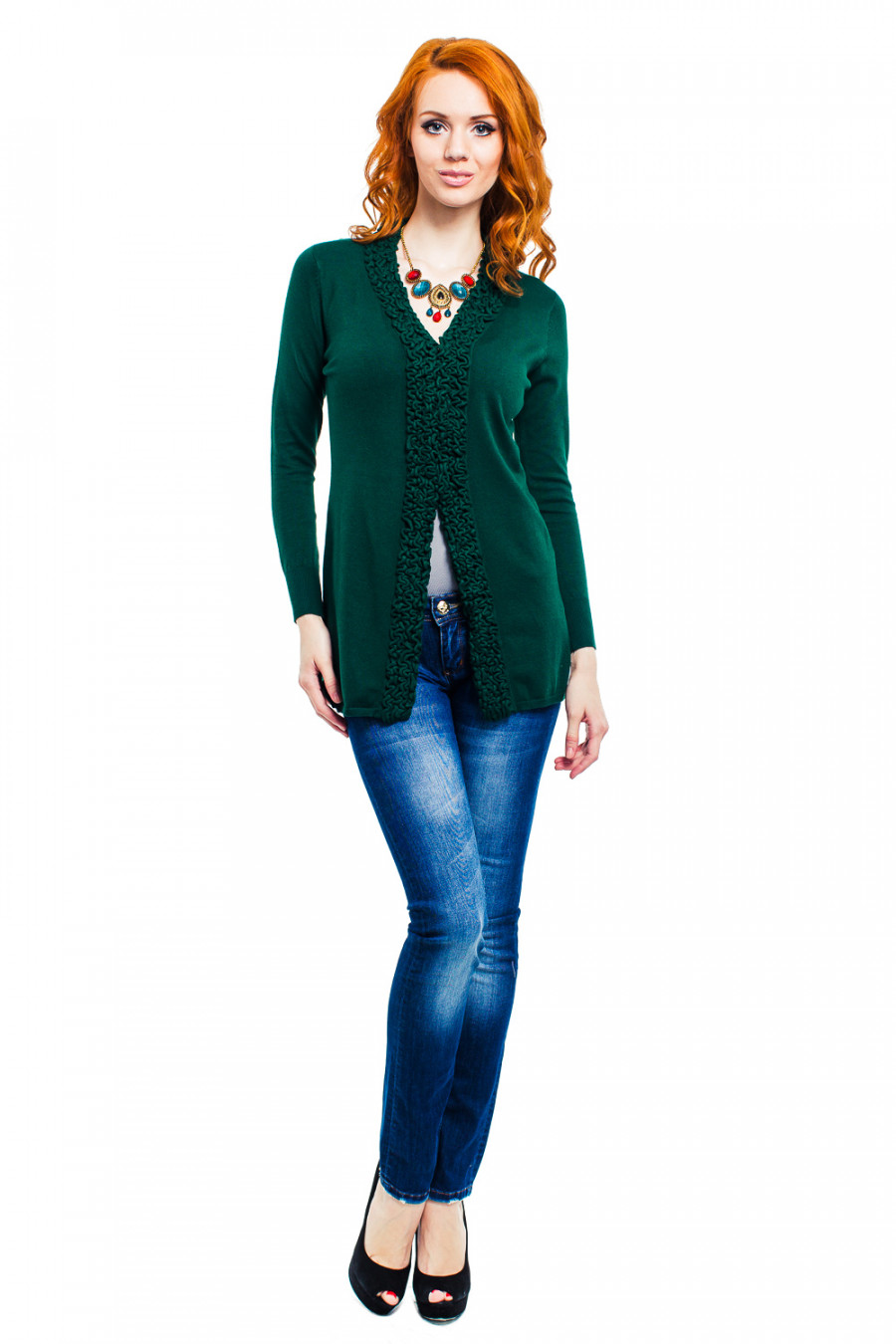 Стильный кардиган из вязаного полотна свободного силуэта с длинными рукавами. Модель фиксируется потайными застежками. Модель украшена оборками, прекрасный и практичный выбор на кажды