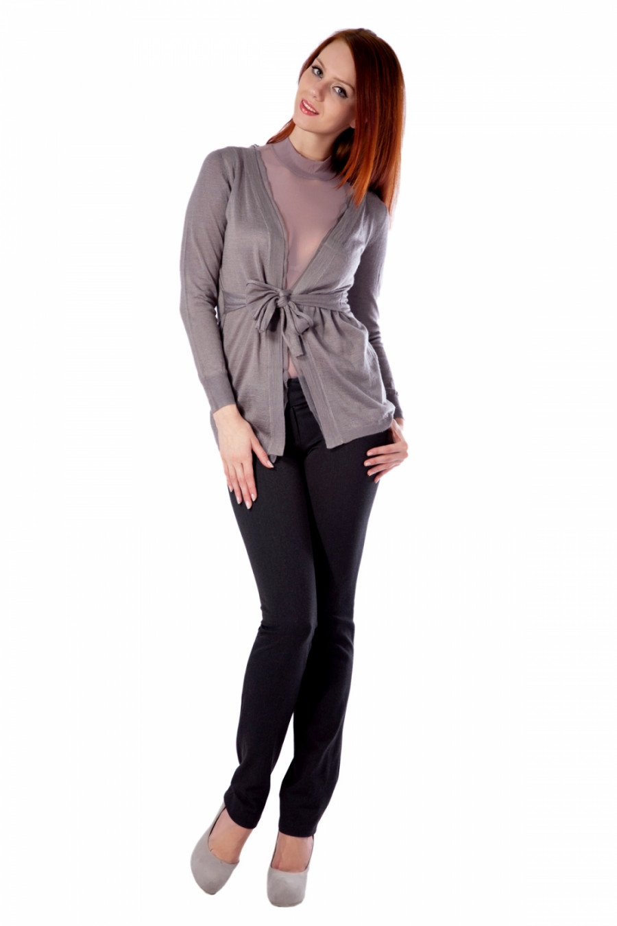 Стильный кардиган с длинным рукавом, края изделия обработаны в два слоя. По бокам у модели имеется пояс, который можно завязать как спереди, так и сзади.