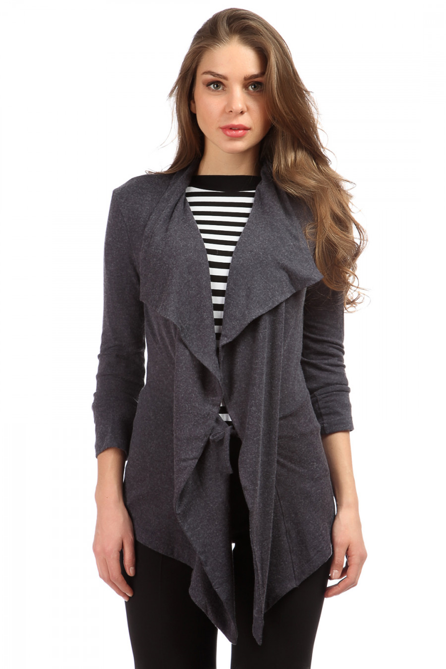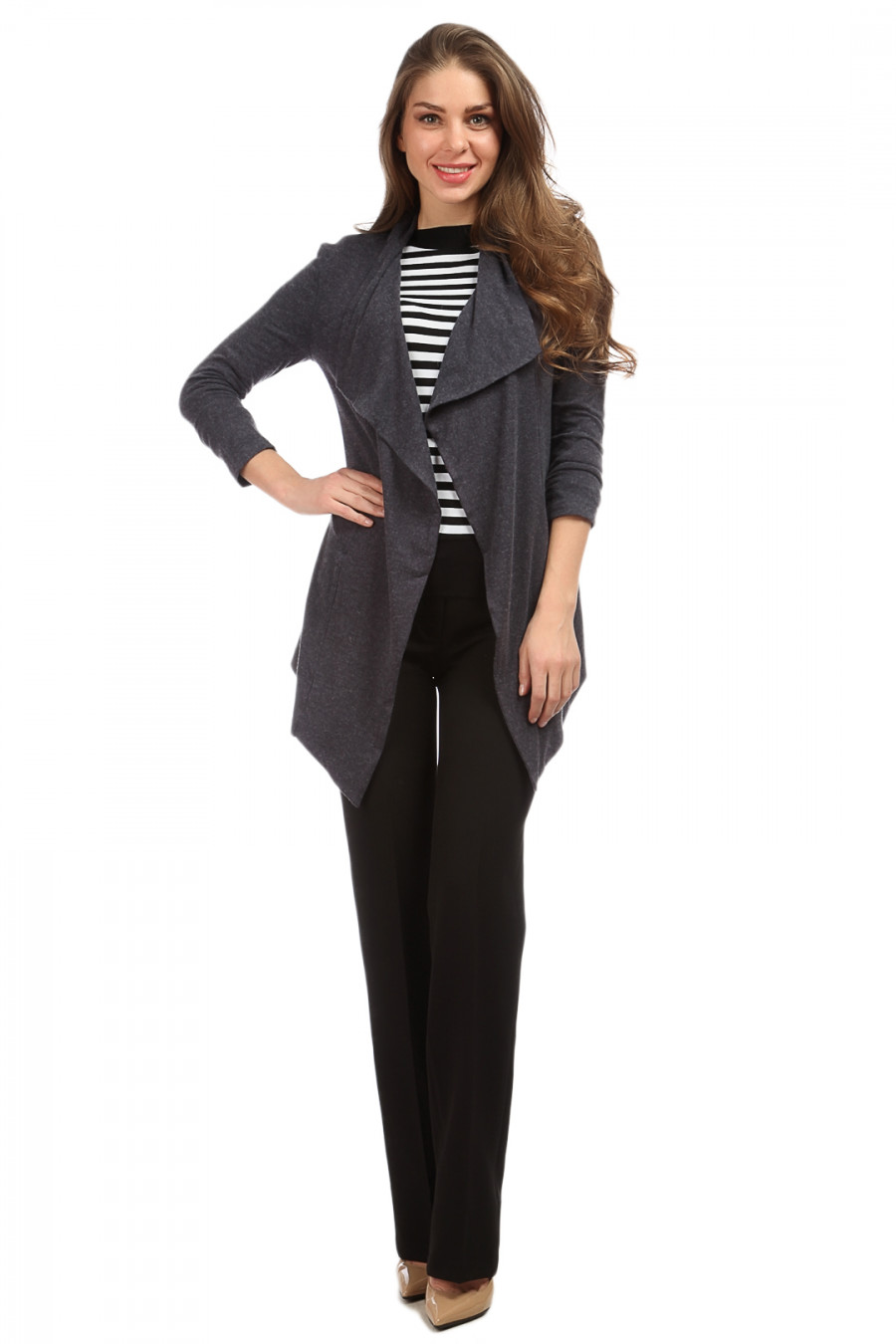 Асимметричная модель кардигана делает его оригинальным. Завязка подчеркивает линию талии. Кардиган идеально подходит к брюкам.