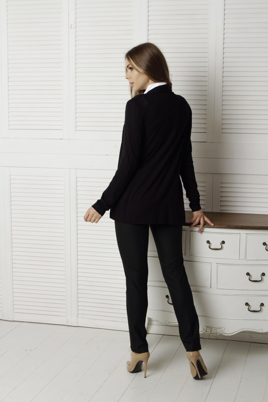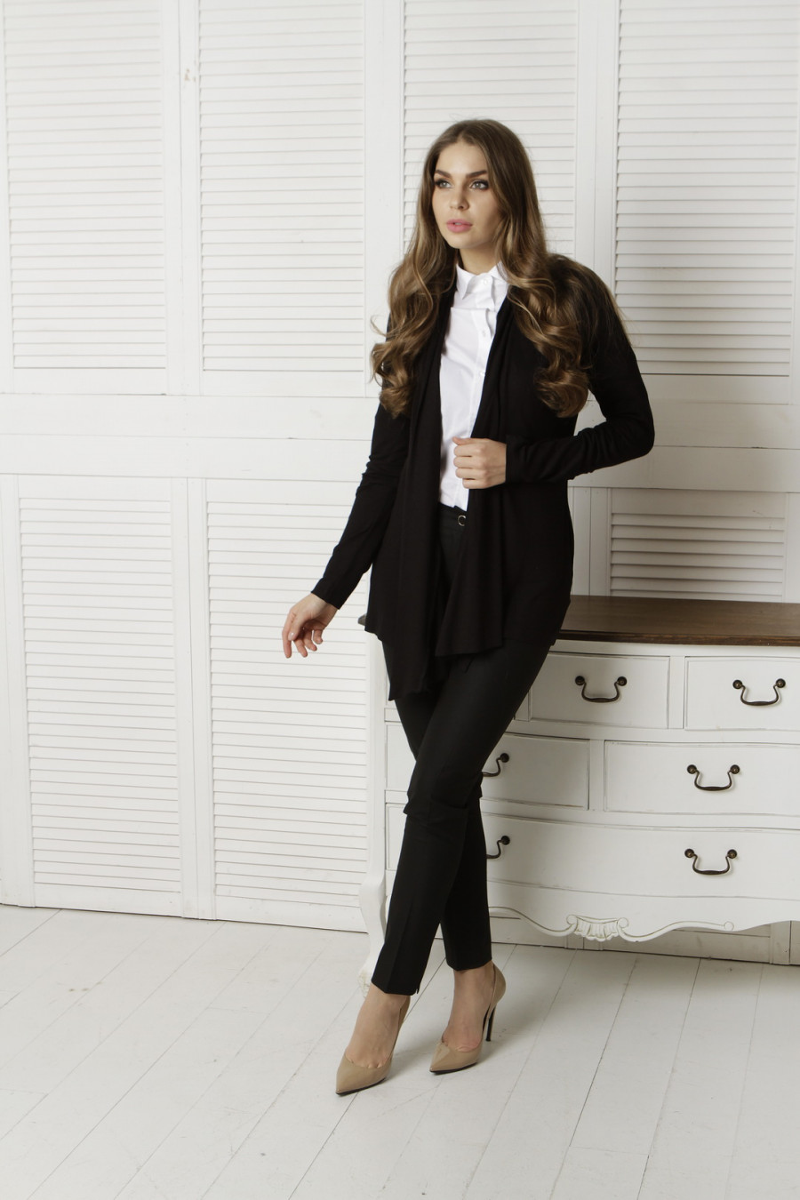 Кардиган свободного кроя без застежки.
