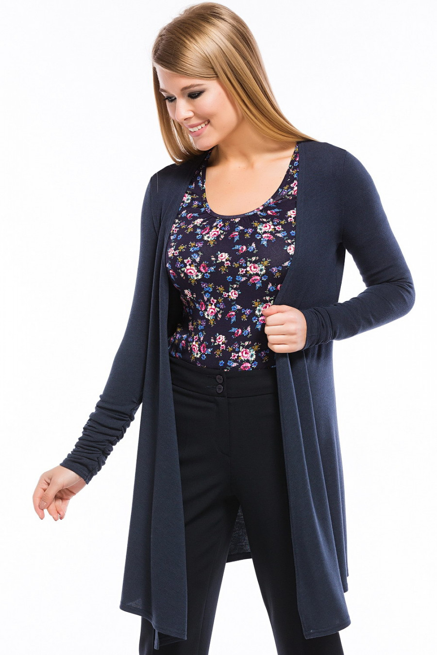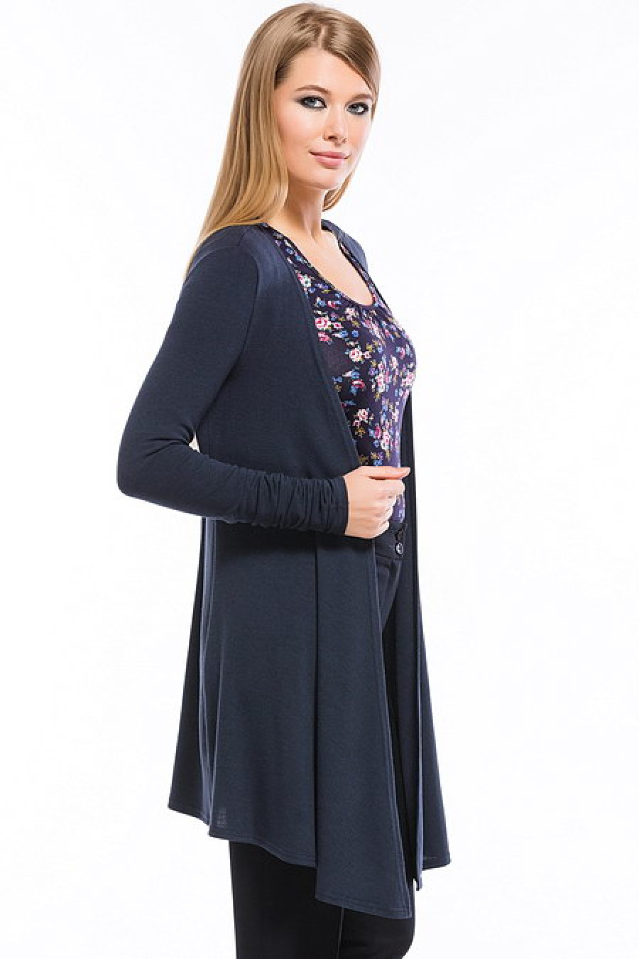 Стильный кардиган прямого кроя без застежек.Рукав удлиненный, присборенный на запястье. Низ асимметричный.