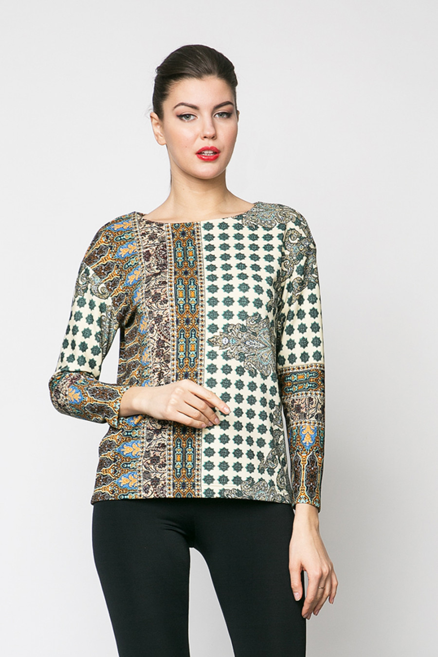 Джемпер с ярким принтом, длинным рукавом. В нем вы не останетесь незамеченной