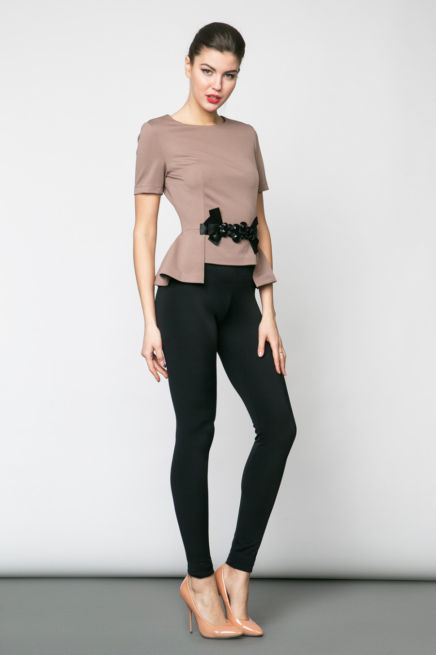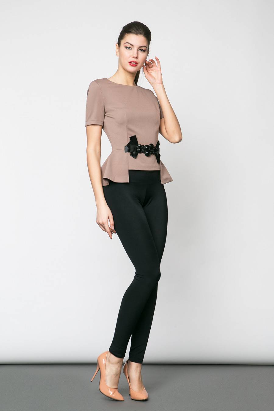 Изящная кофточка с баской, с поясом из камней. Короткий рукав, отлично подчеркивает фигуру обладательницы